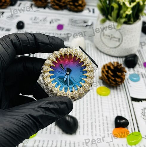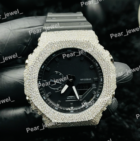 925 Silver Iced Out VVS Moissanite Diamond G-Shock Watch