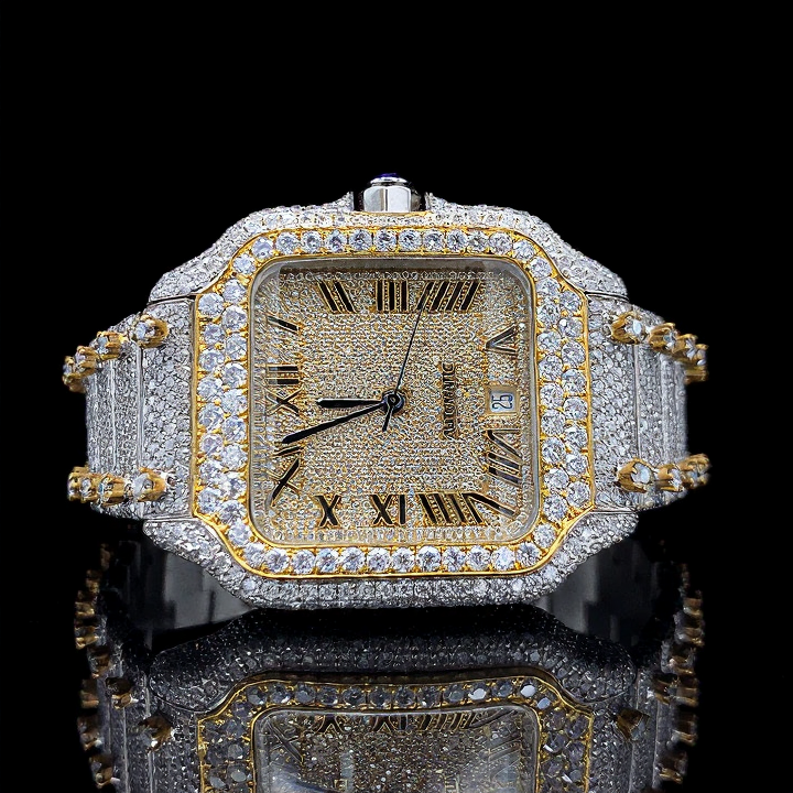 Iced Out Hip Hop Moissanite Diamond Roman Dial Wrist Watch