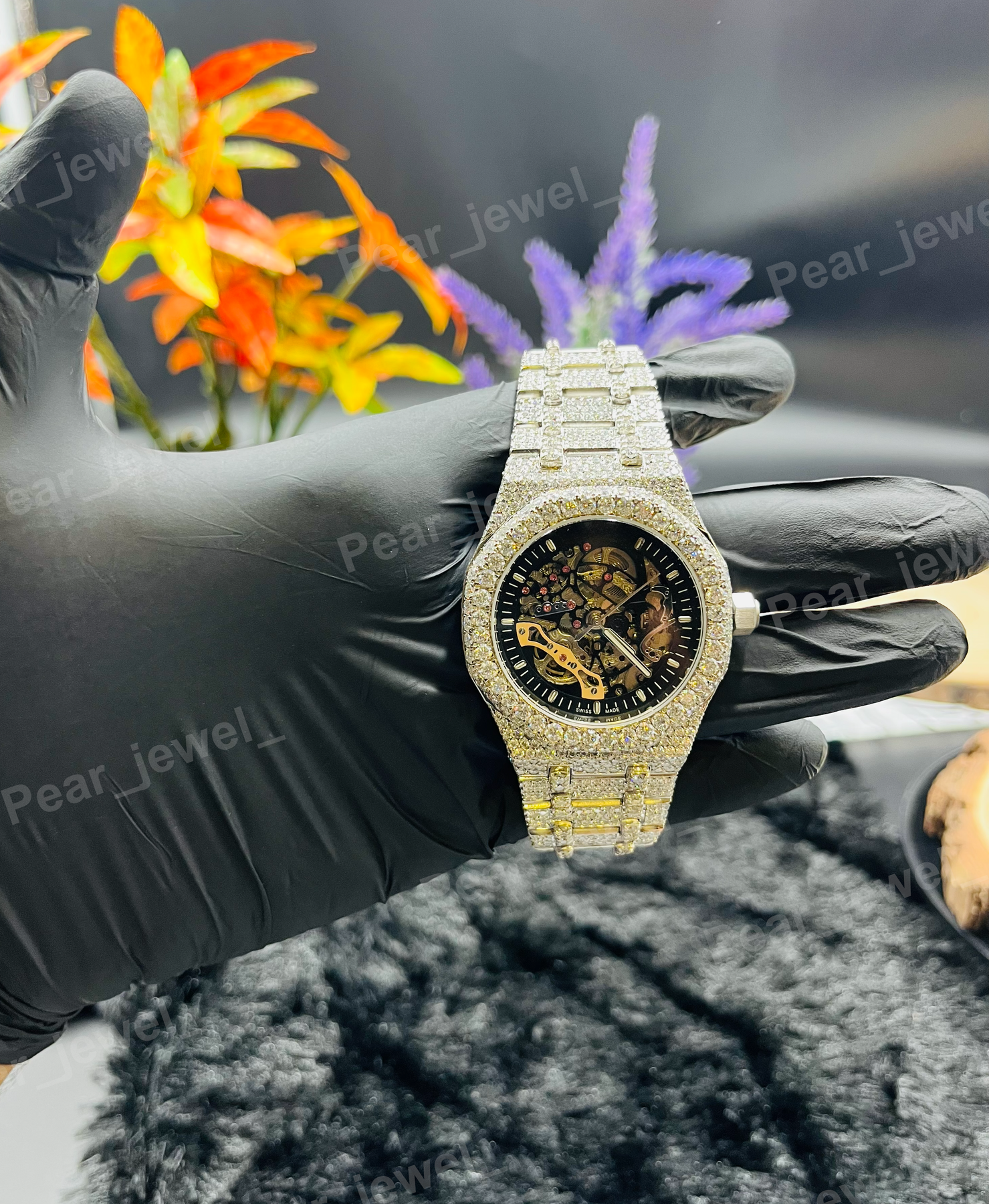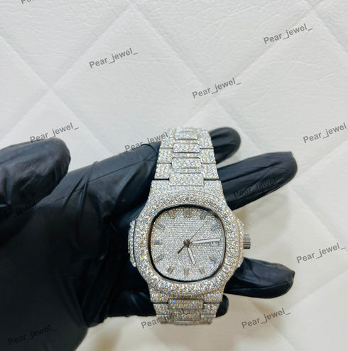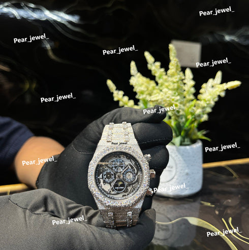 AP Iced Out Stainless Steel VVS Moissanite Diamond Bust down Watch
