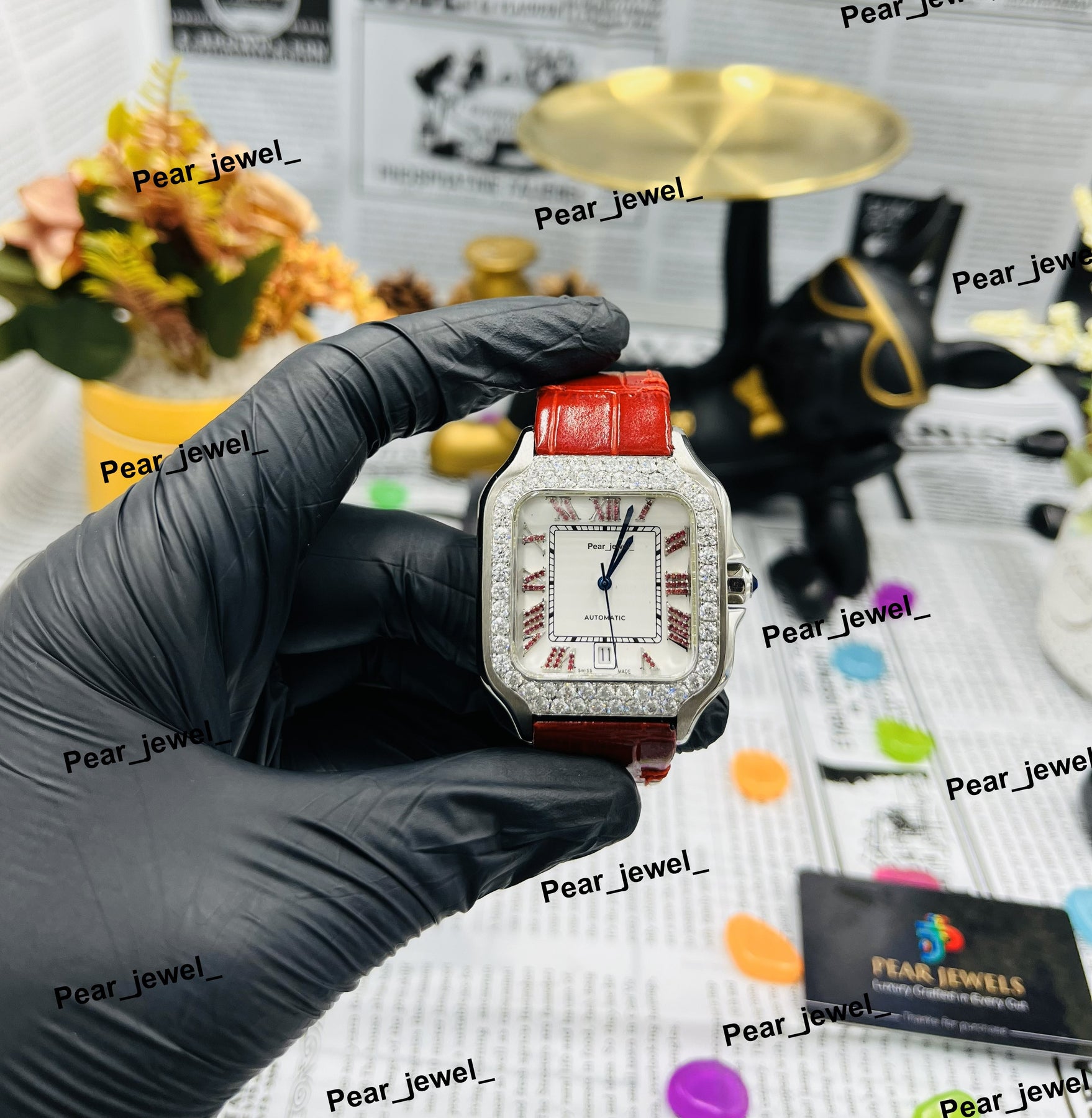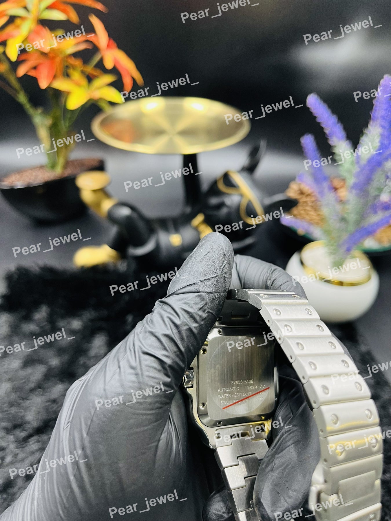 Dial Window Material Type : Glass Band Material Type : Leather Case Material : Stainless Steel Case Shape : Square Clasp Type : Butterfly Clasp Water Resistance Depth : No waterproof Movement : Automatic Place of Origin : India Feature : Lightweight User : Unisex Type : Luxury