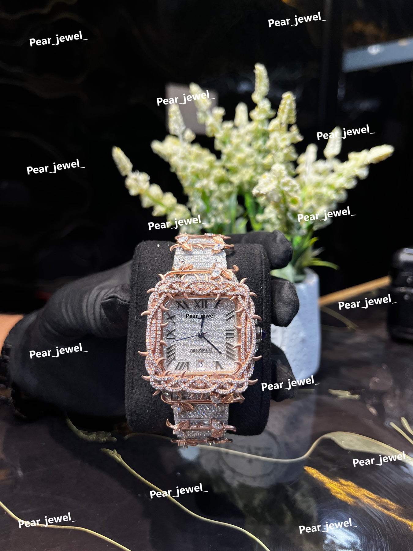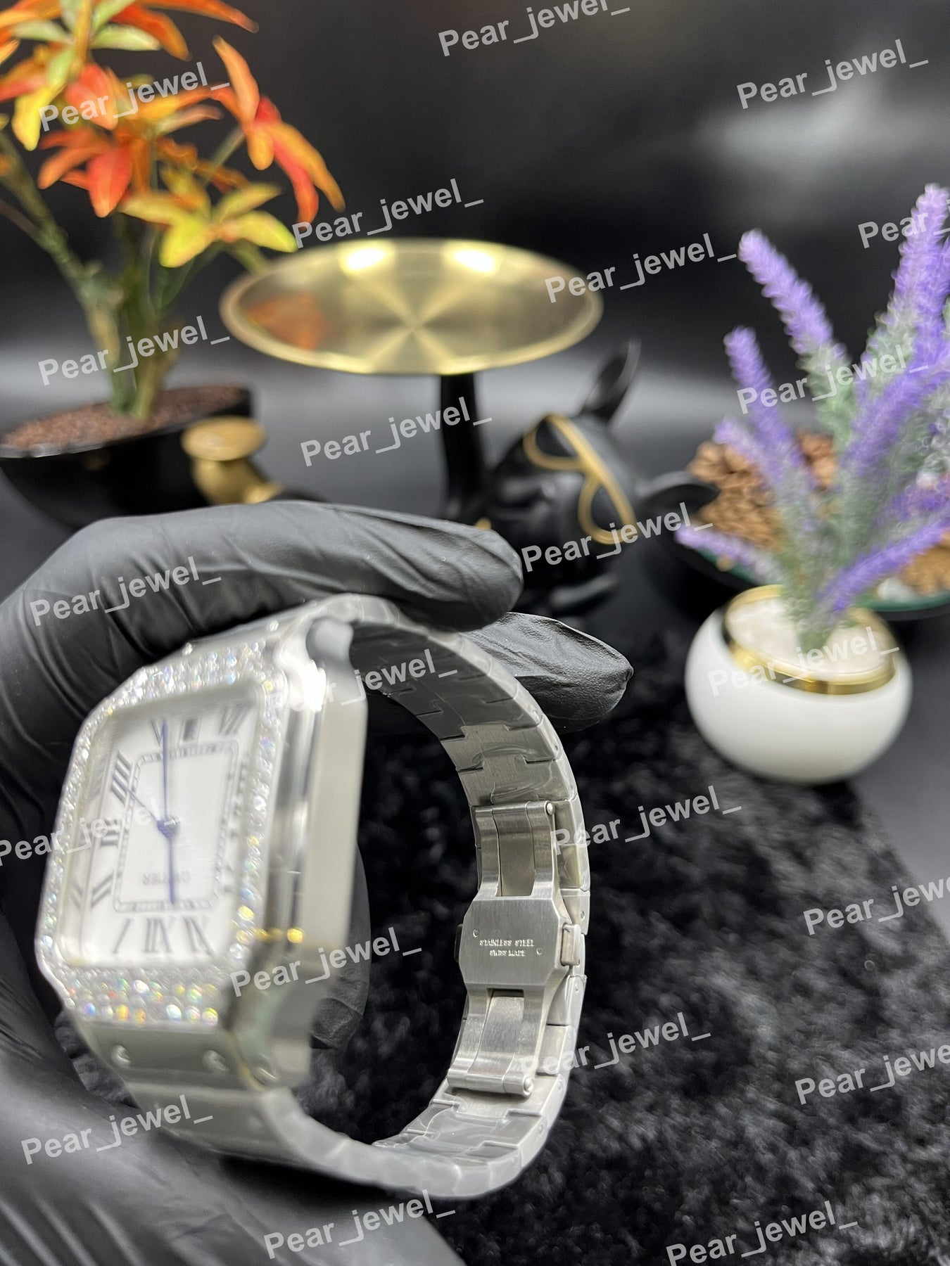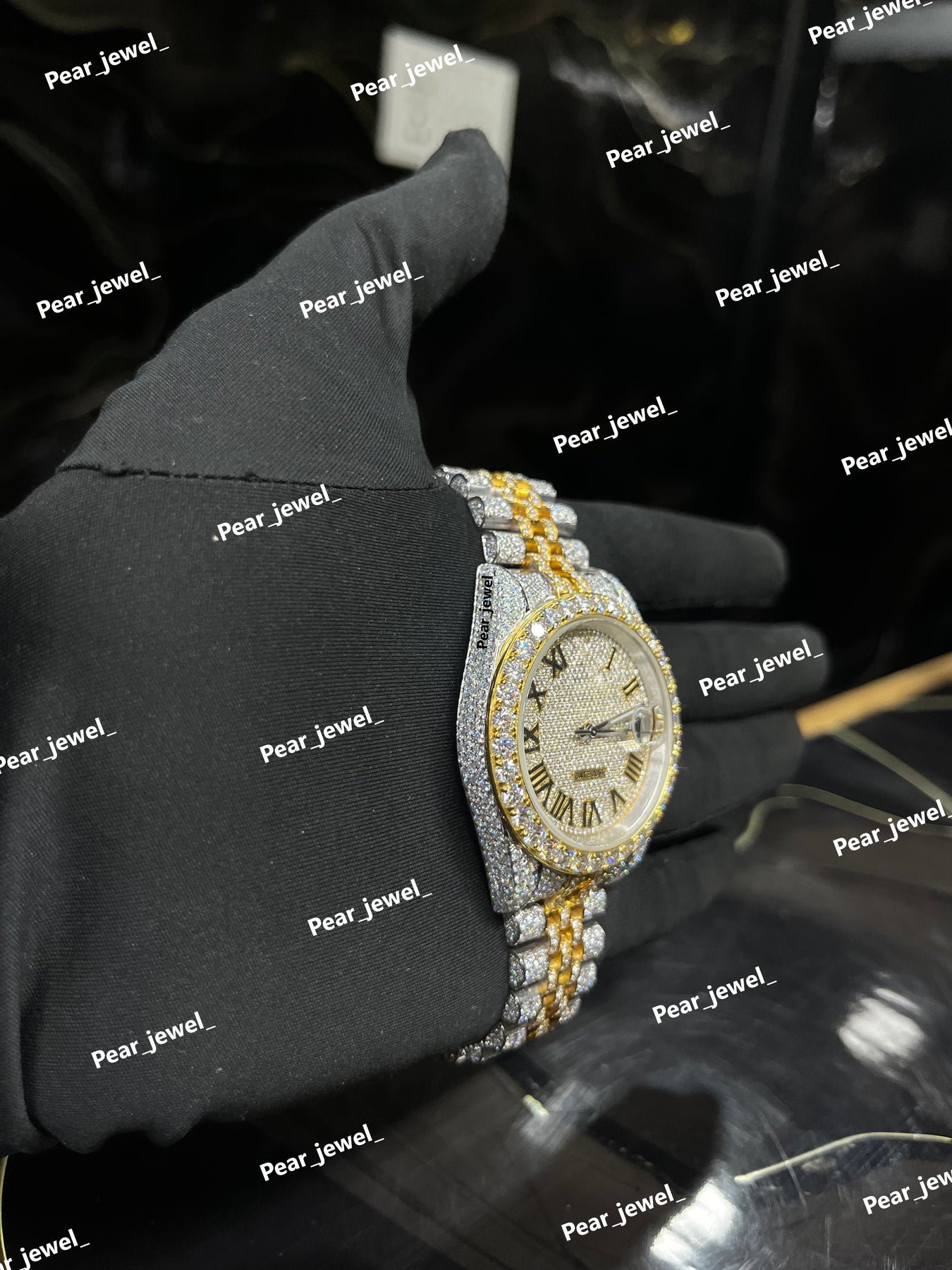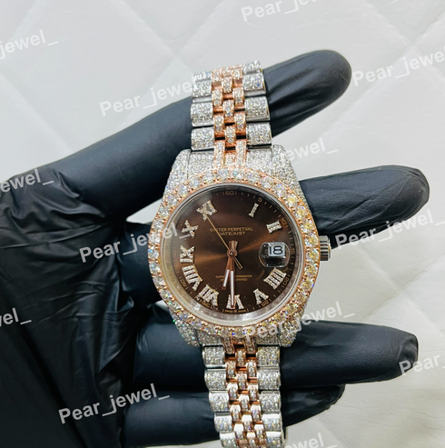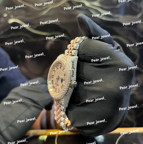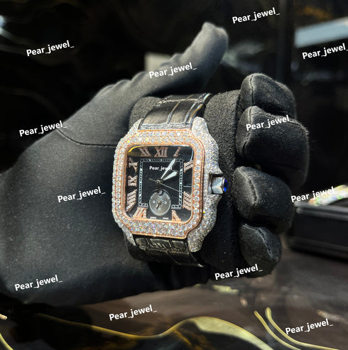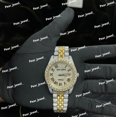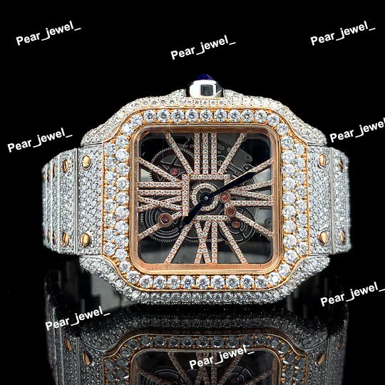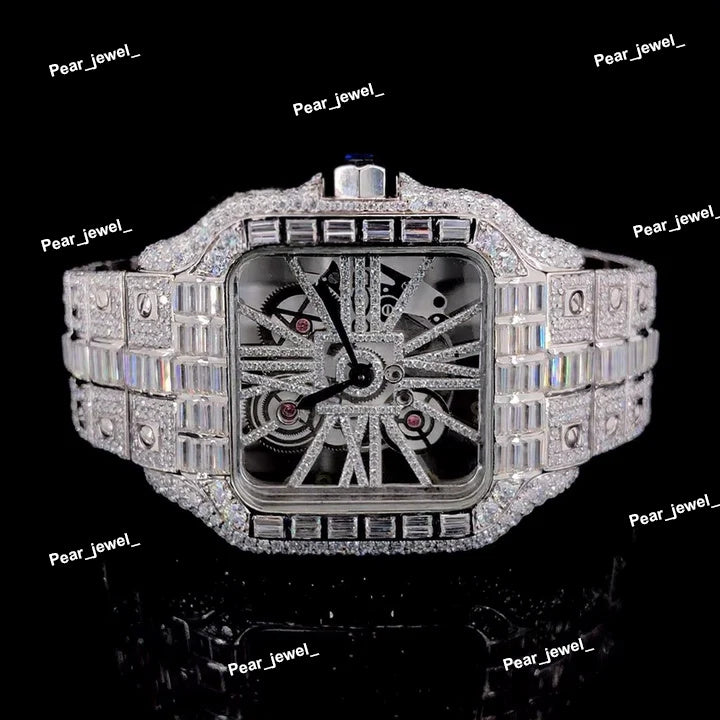 Iced Out Stainless Steel Watch Moissanite Diamond Roman Dial