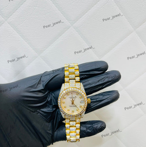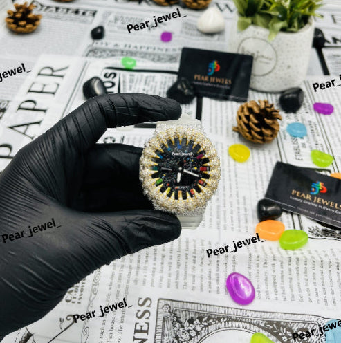Iced Out Silver Moissanite Diamond Bezel Wrist Watch