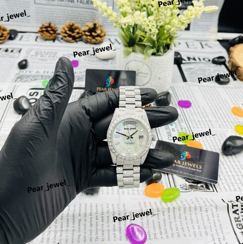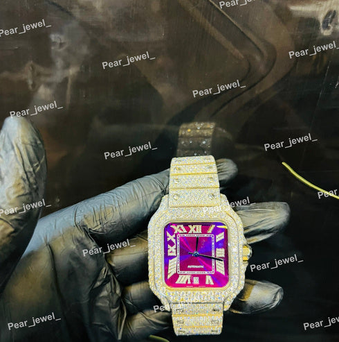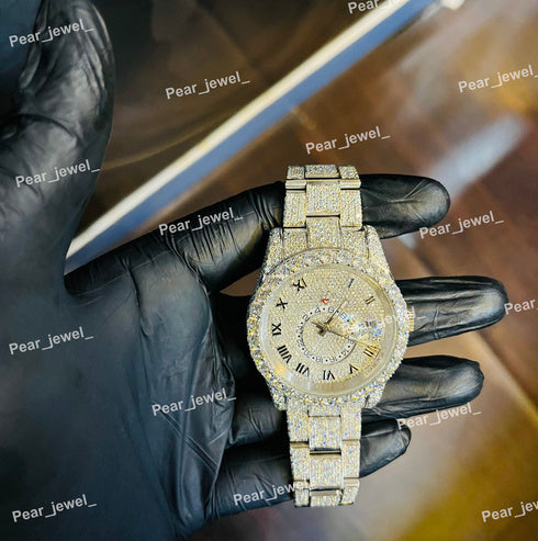Stainless Steel Iced Out VVS Moissanite Diamond Dial Watch