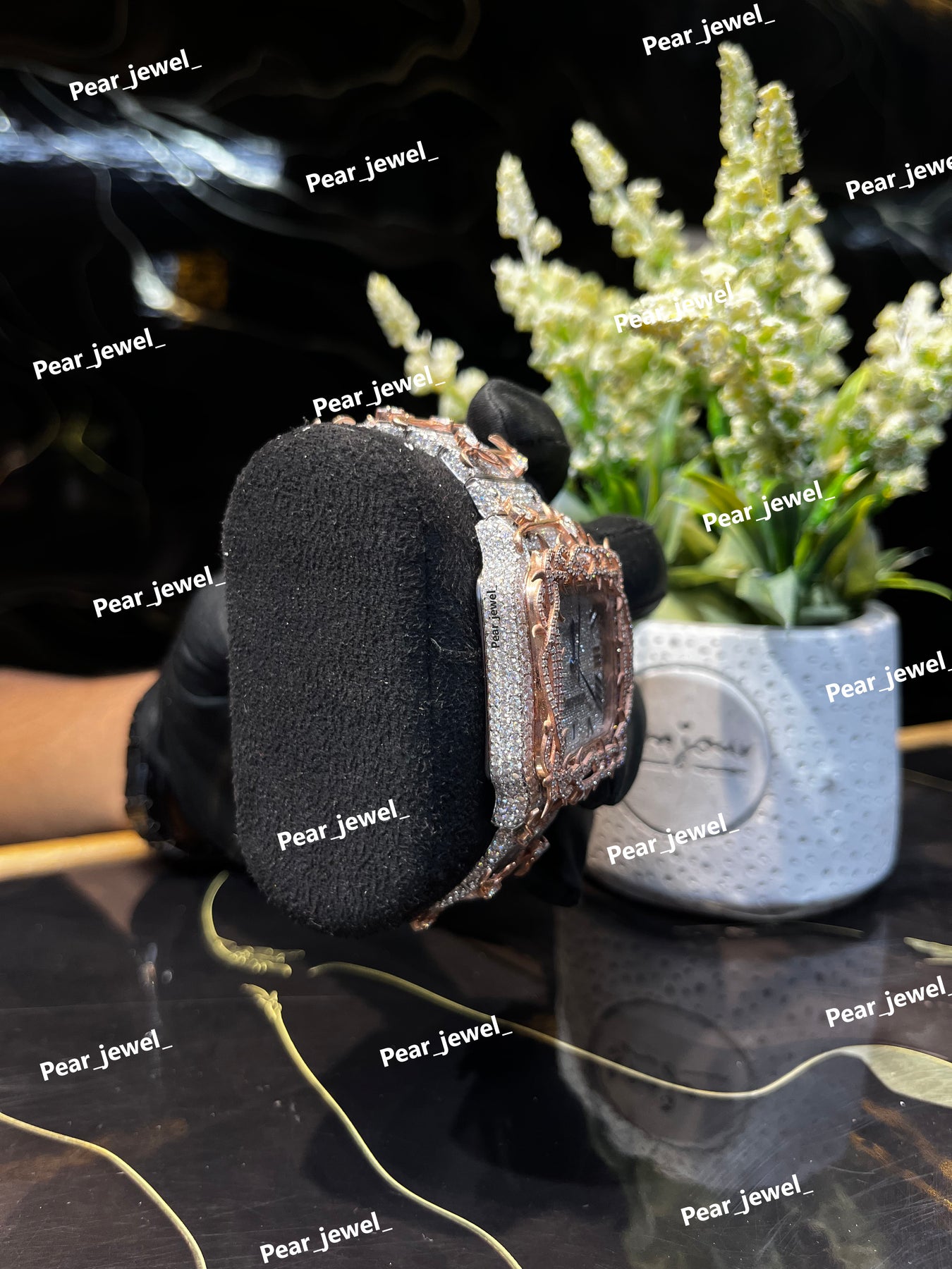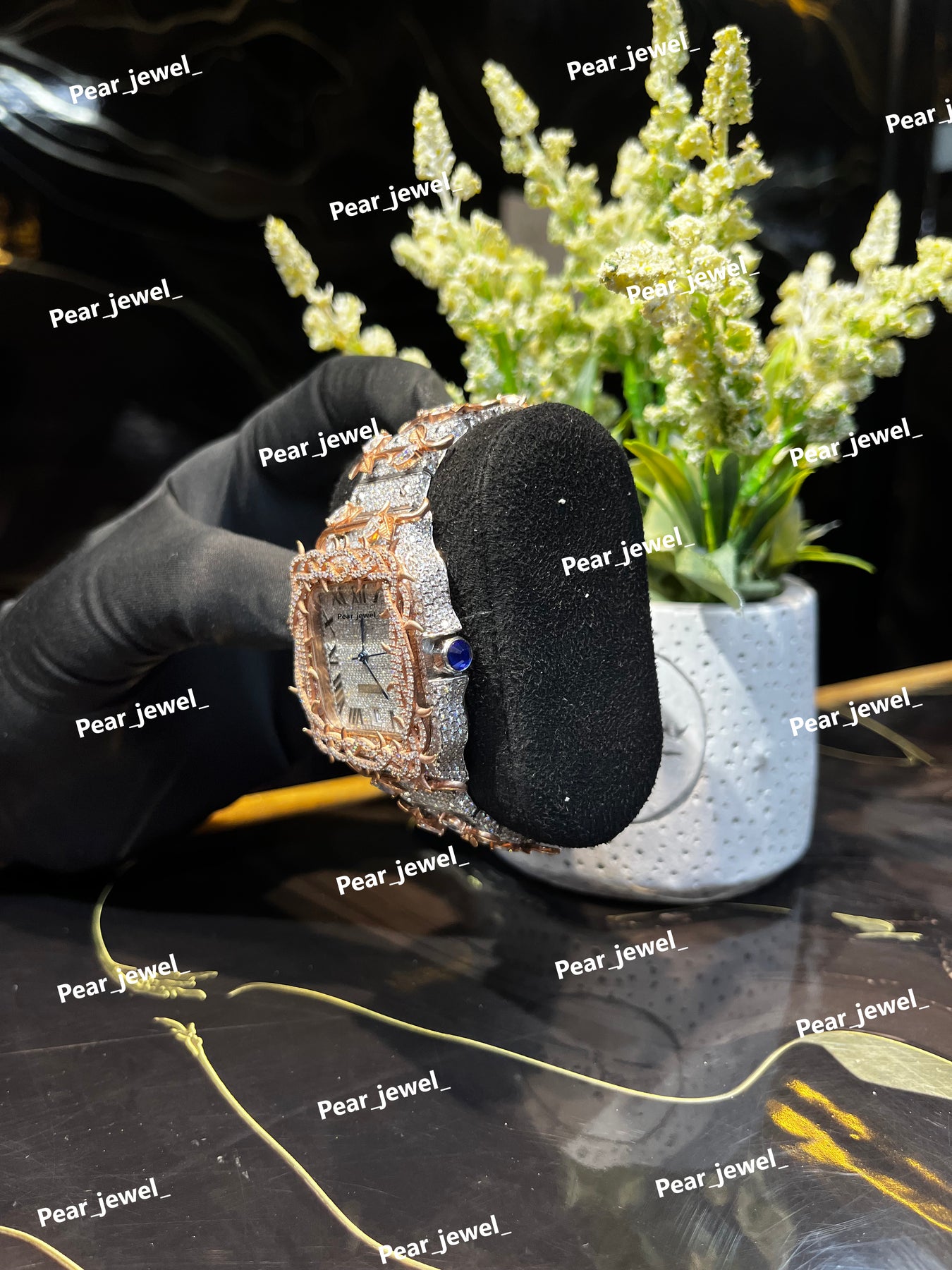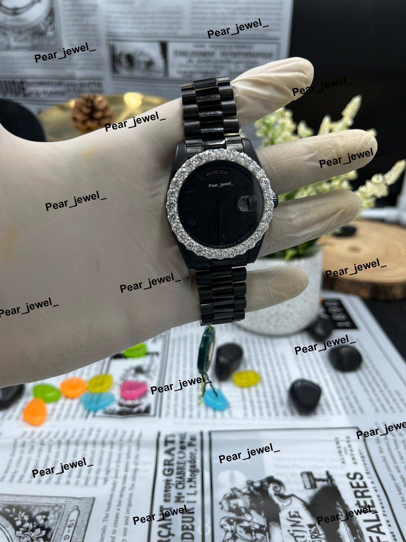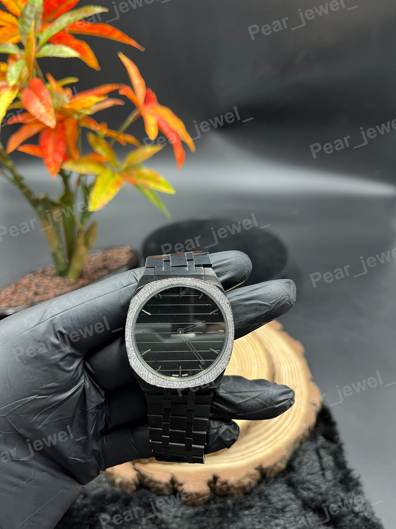 Iced Out Black Watch Moissanite Diamond Look Bezel Stainless Steel Wrist Watch