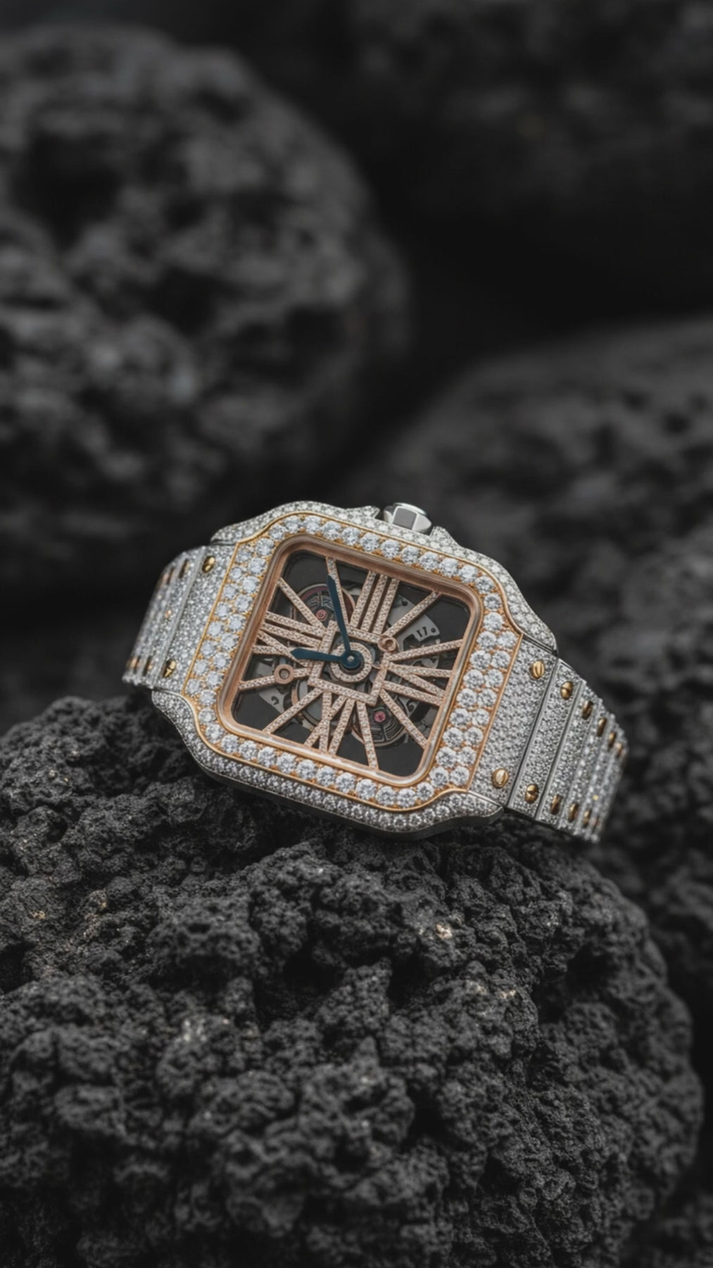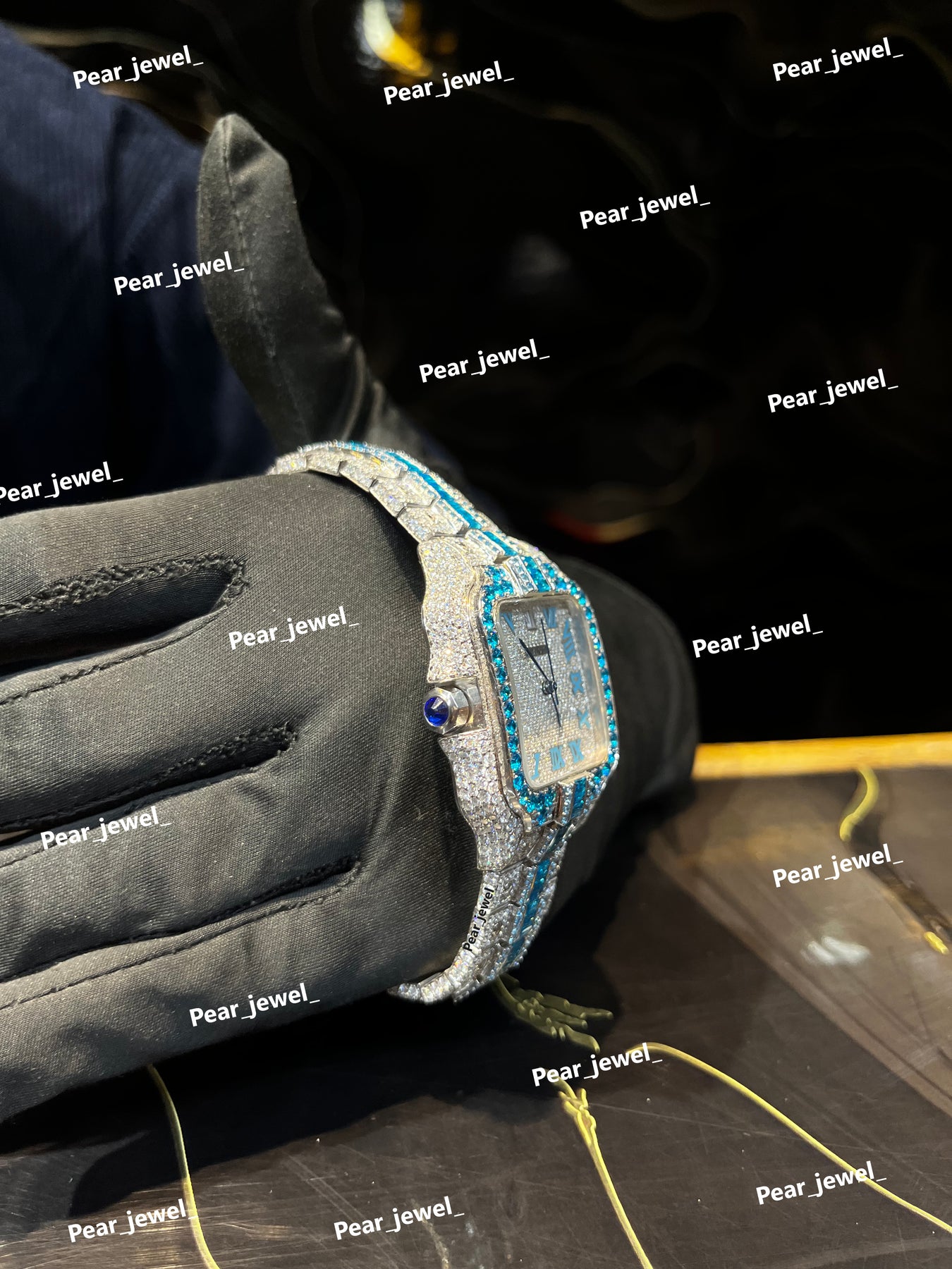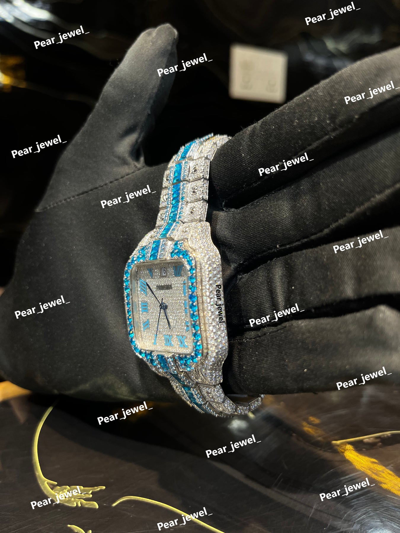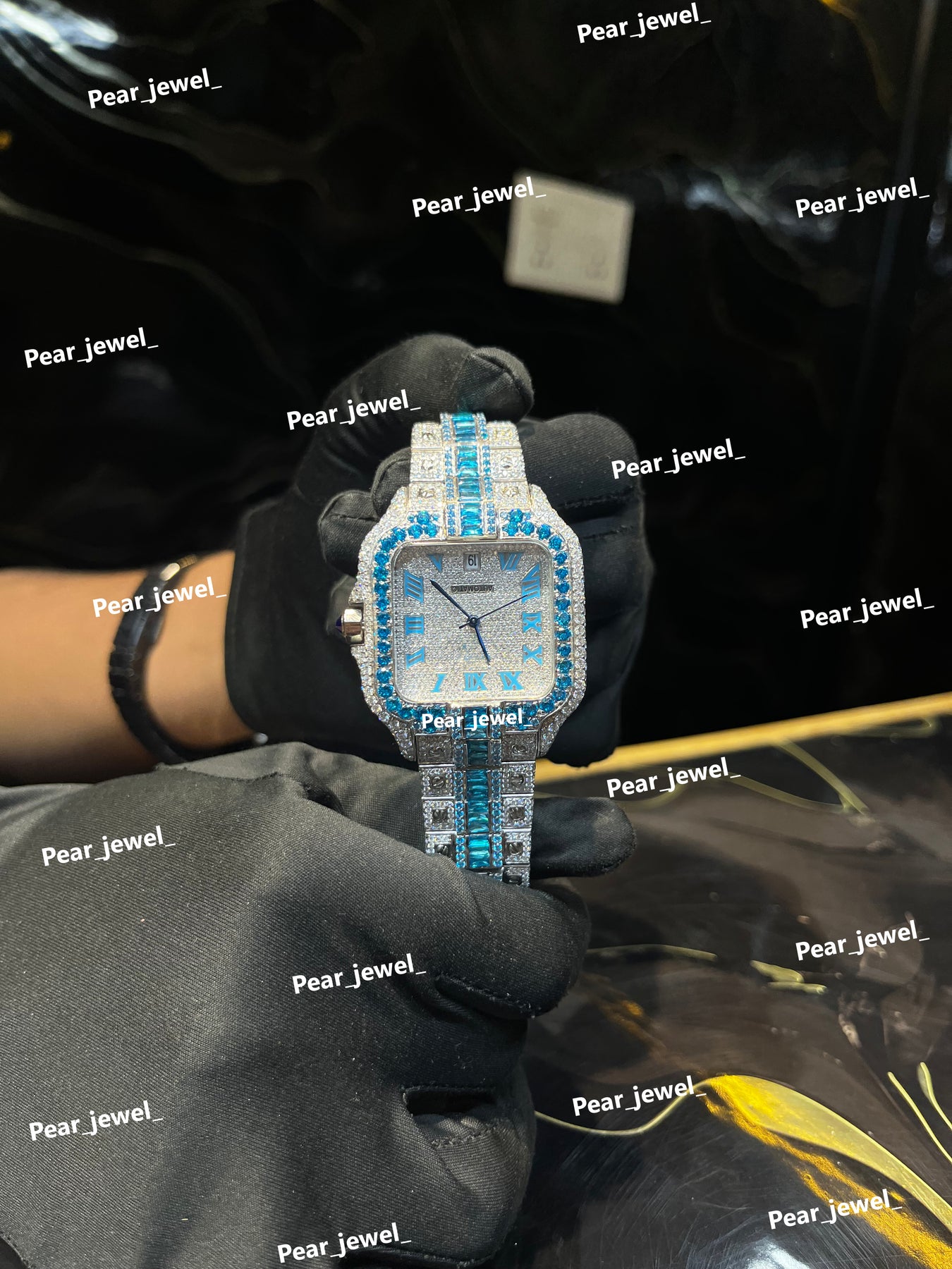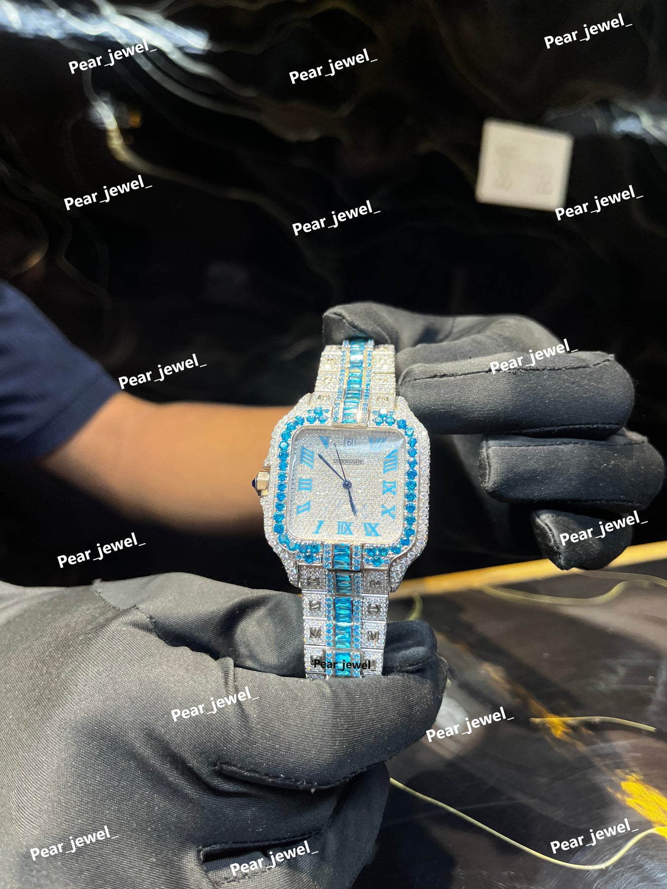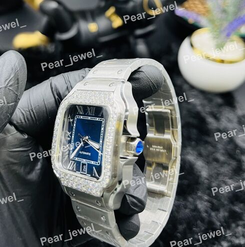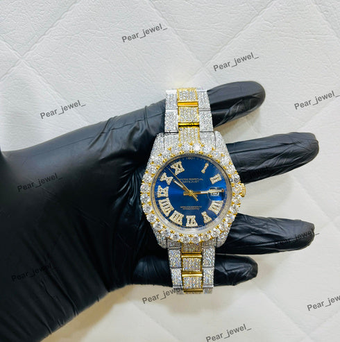 Iced Out Blue Stone Square Moissanite Diamond Roman Dial