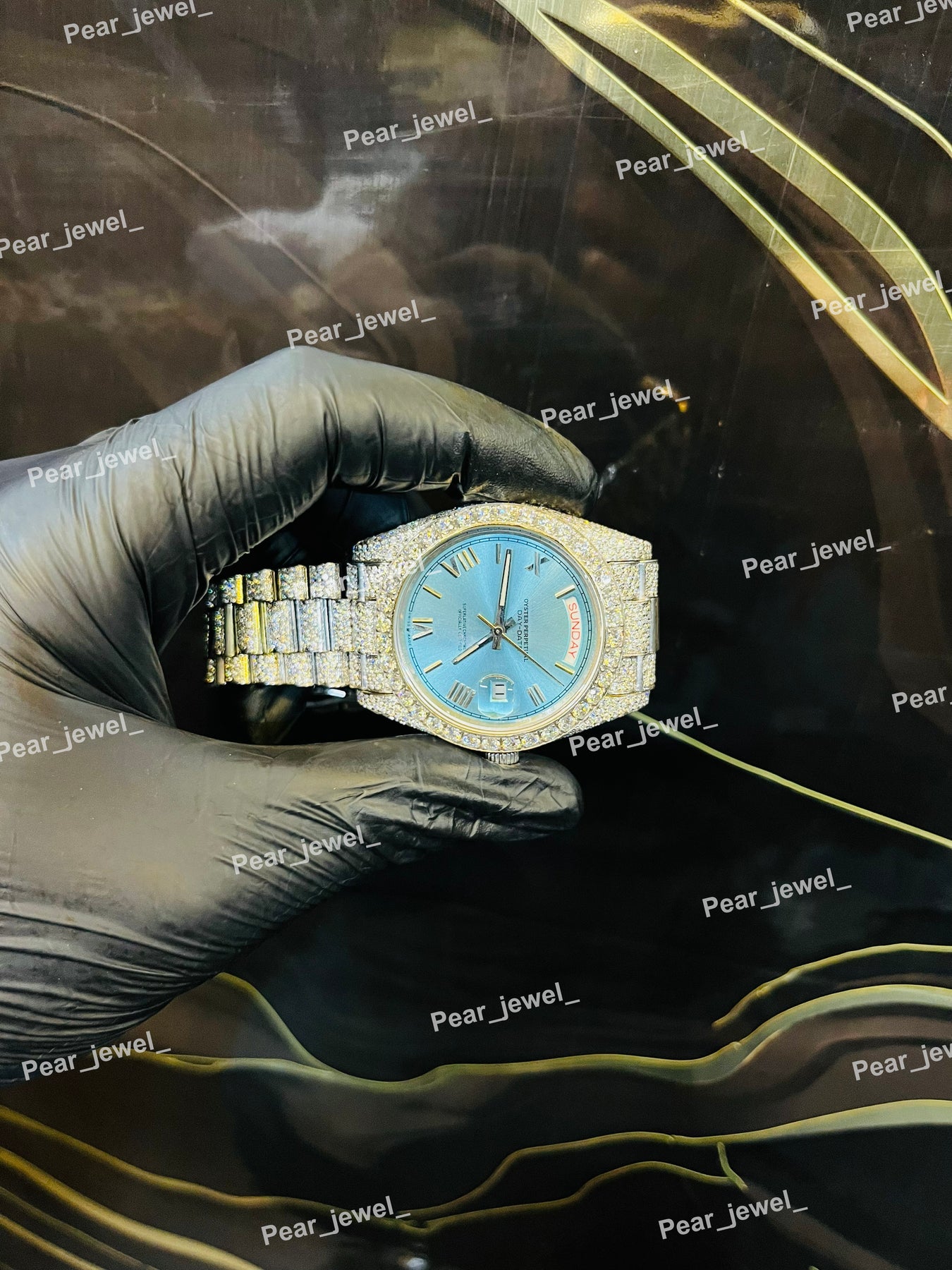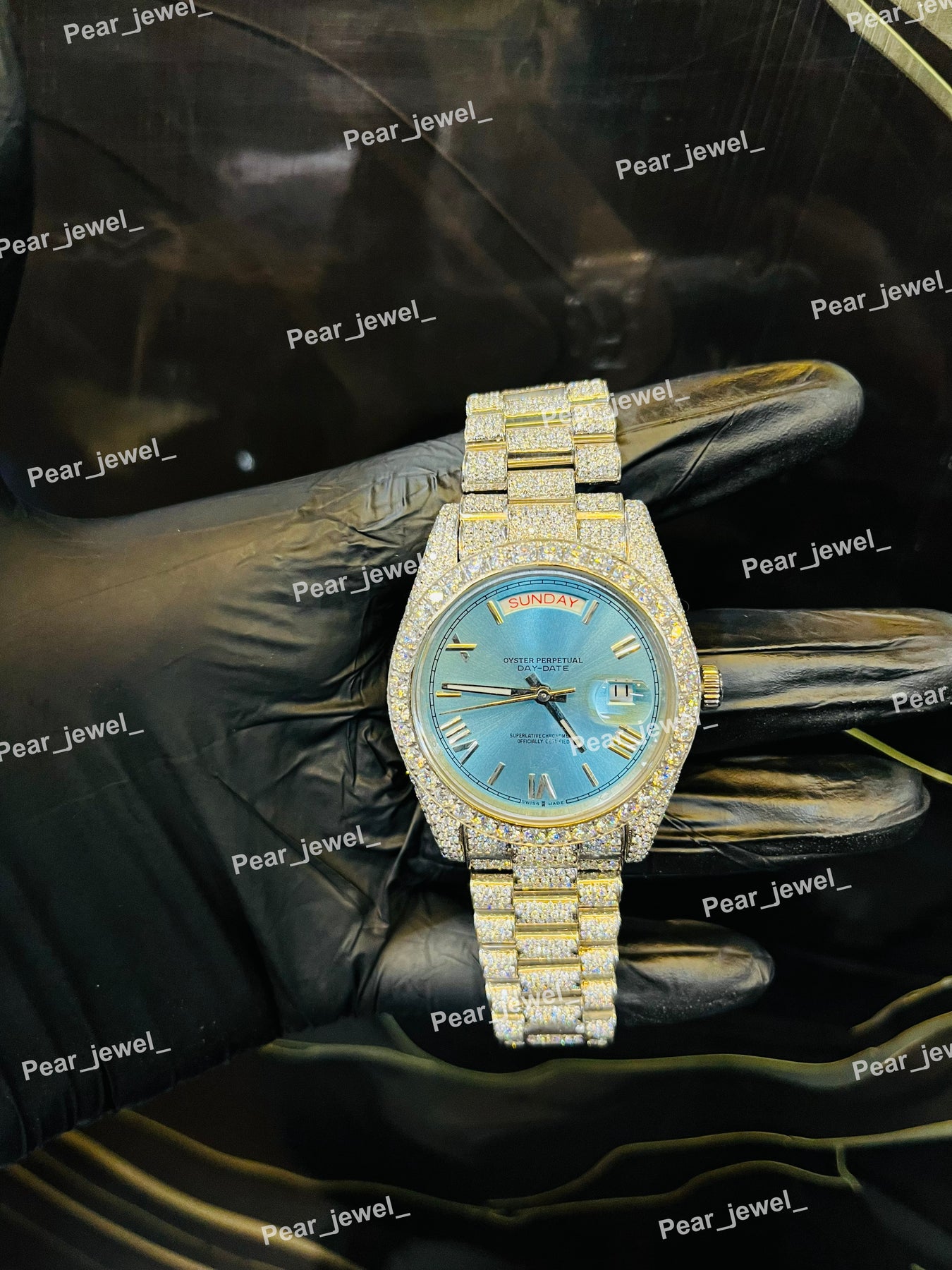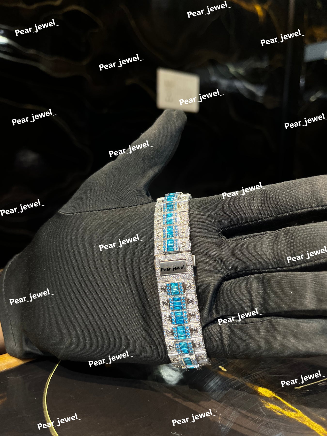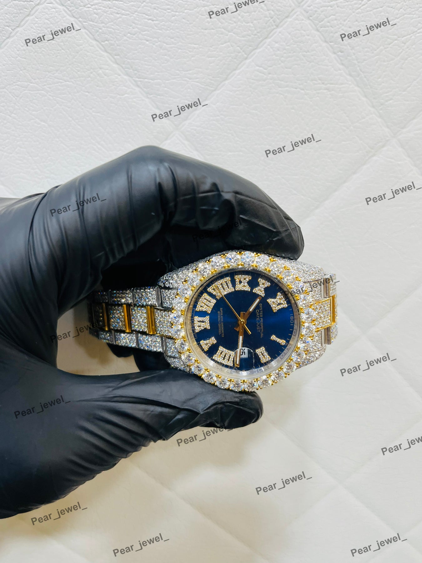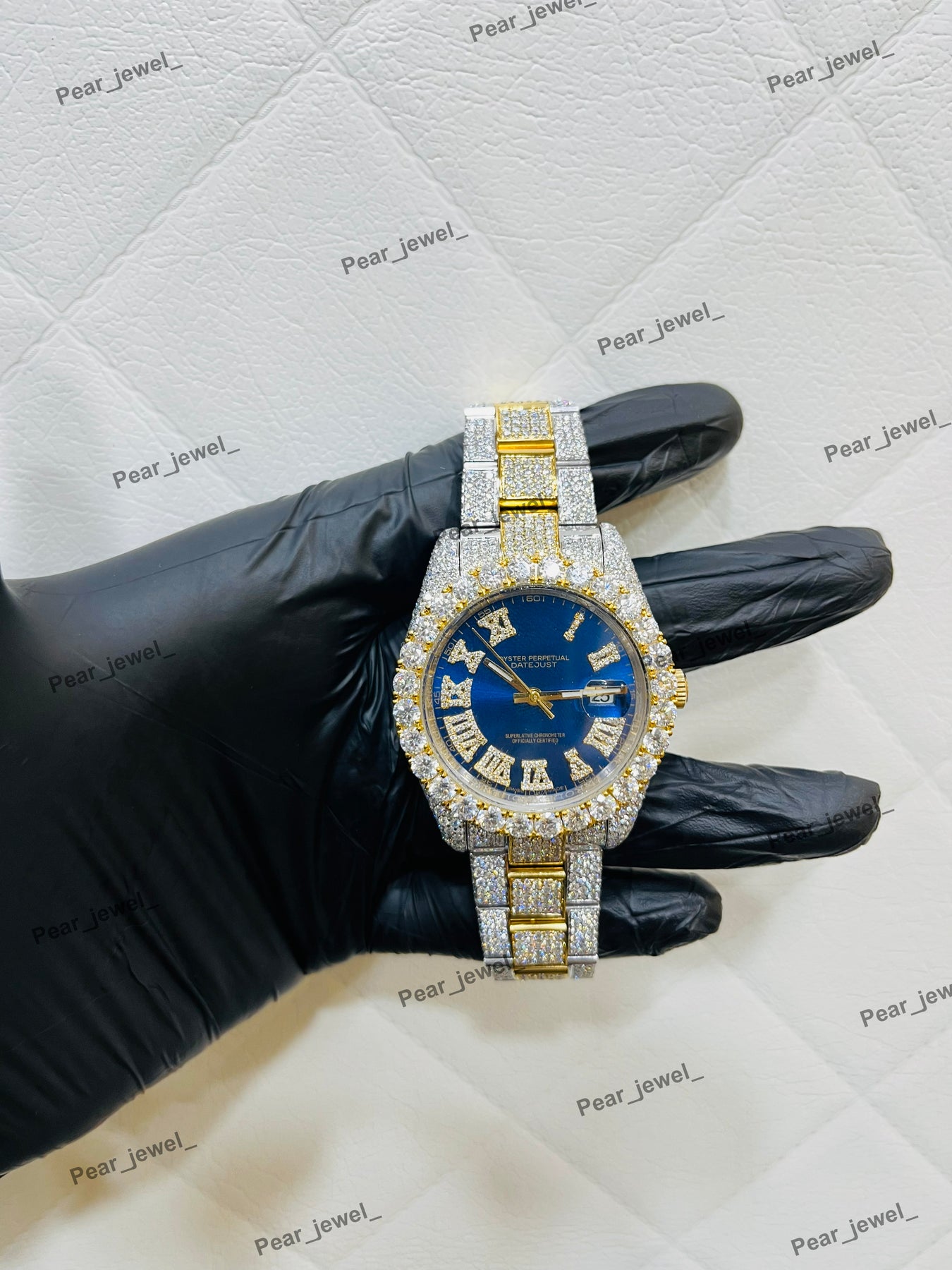Iced Out Blue Stone Square Moissanite Diamond Roman Dial