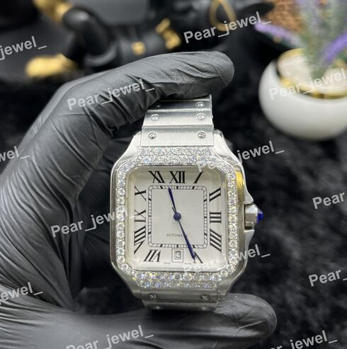 Iced Out Stainless Steel Watch Moissanite Dimaond Roman Dial Luxury Wrist Watch