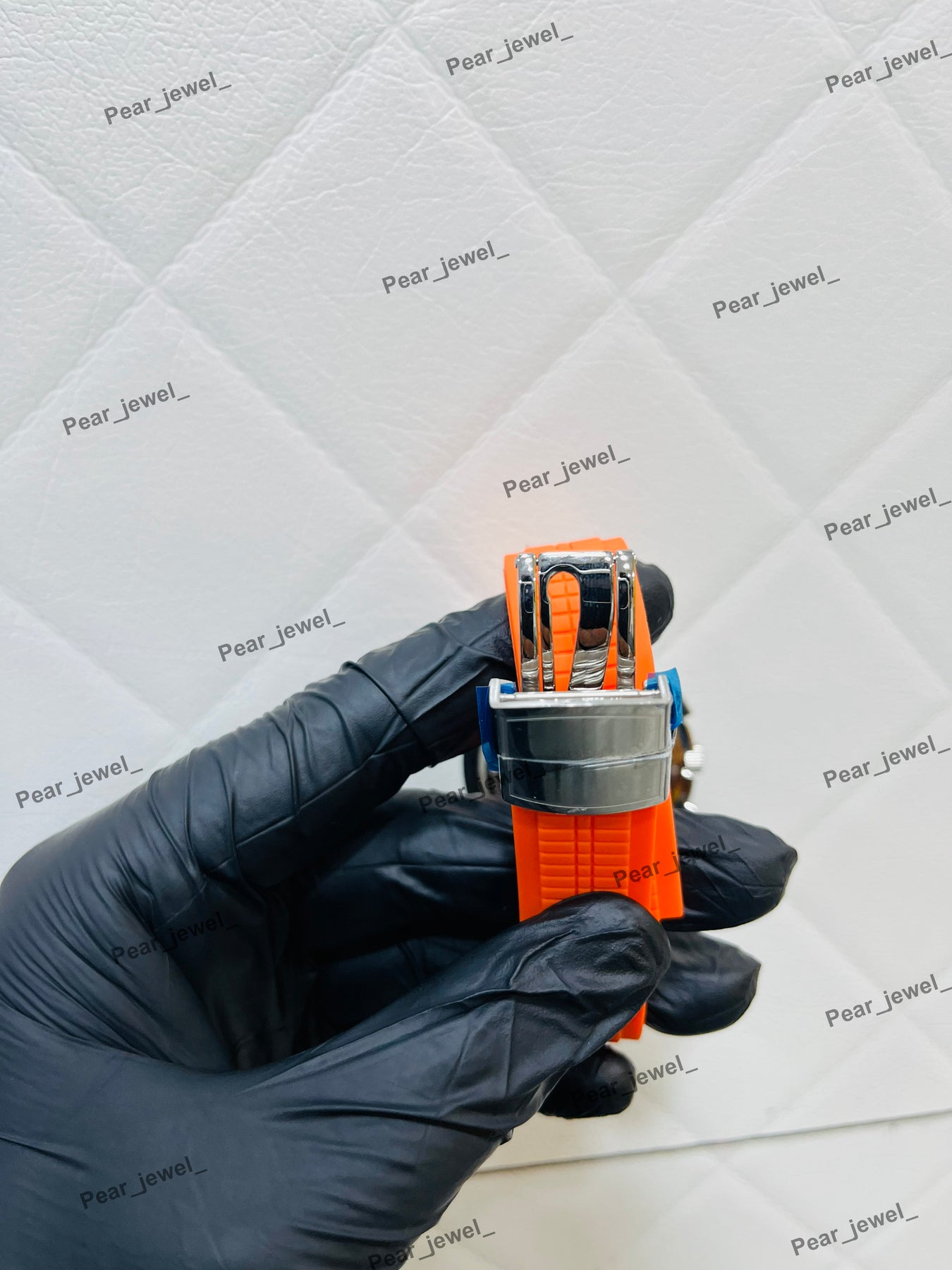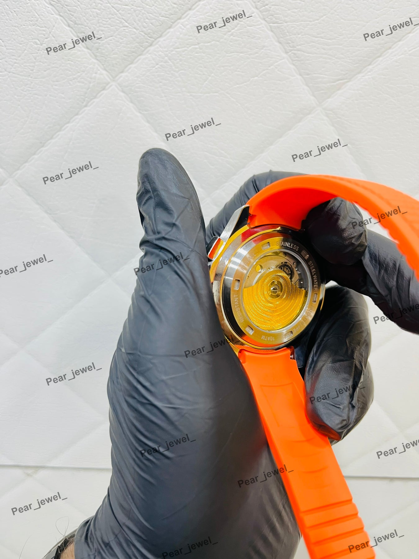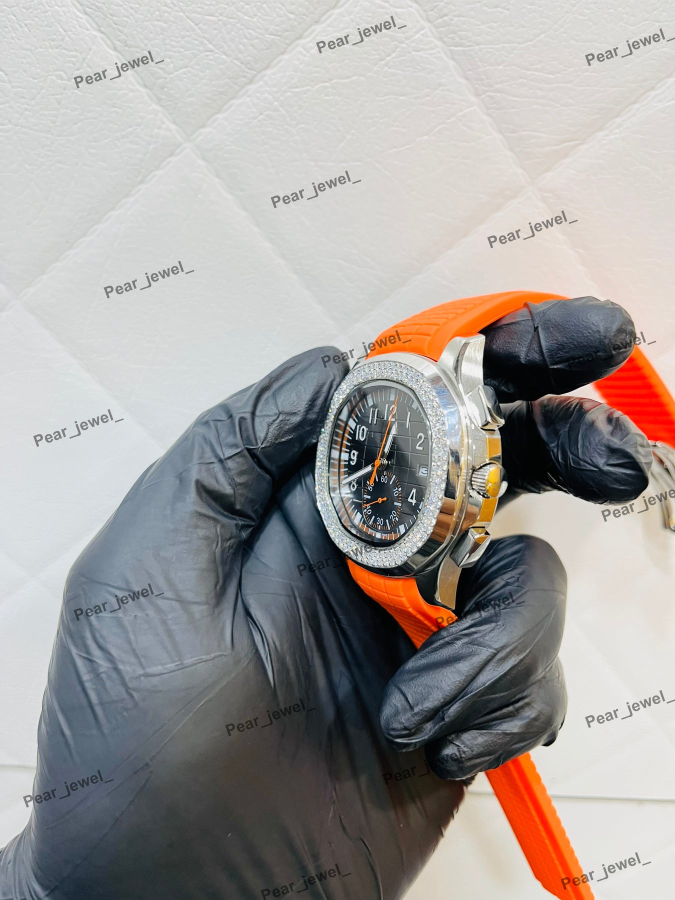 Iced Out Moissanite Daimond Bezel Sport Watch Orange Strap Steel