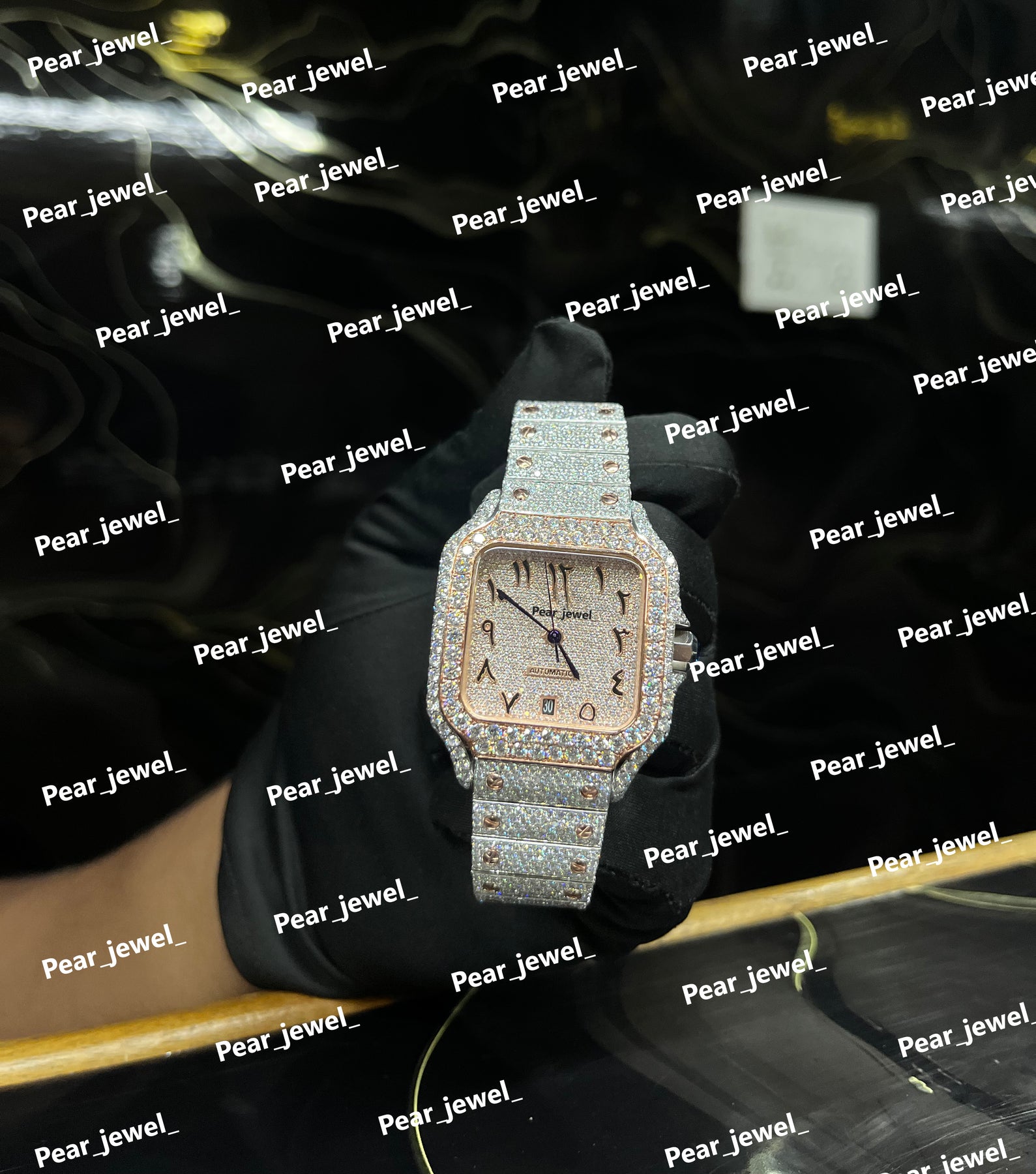 Iced Out Stainless Steel Arabic Dial Moissanite Diamond Watch