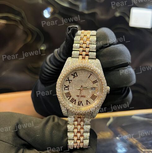 Iced Out Stainless Steel Roman Dial Watch Moissanite Diamond Luxury Wrist Watch