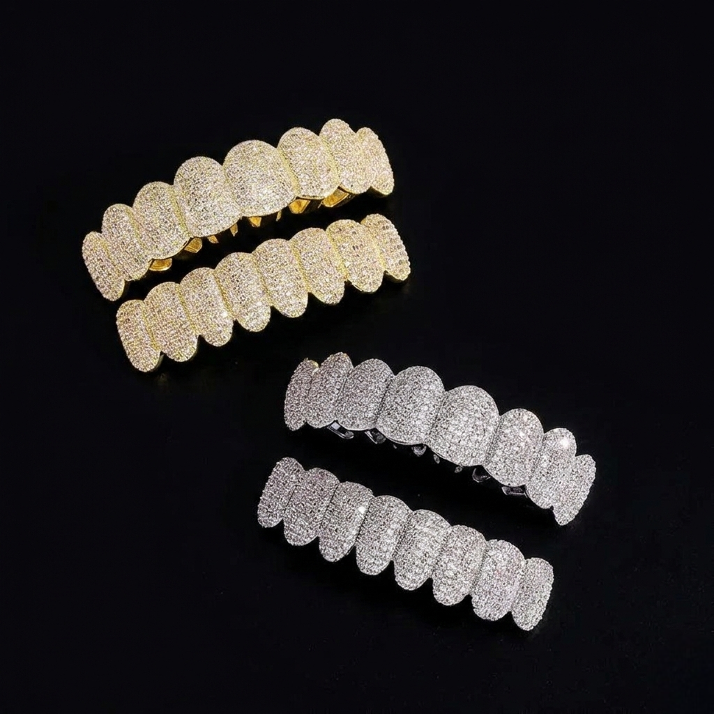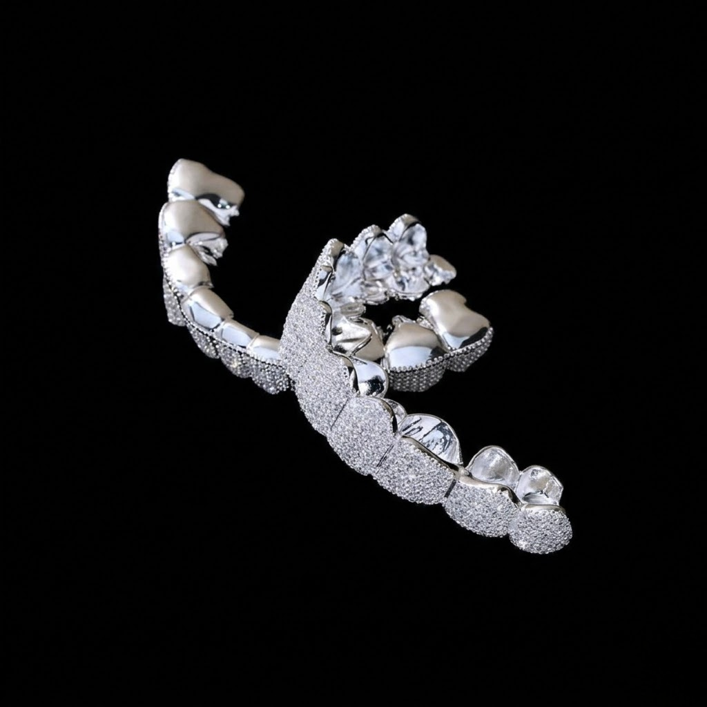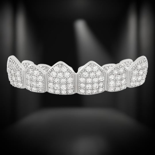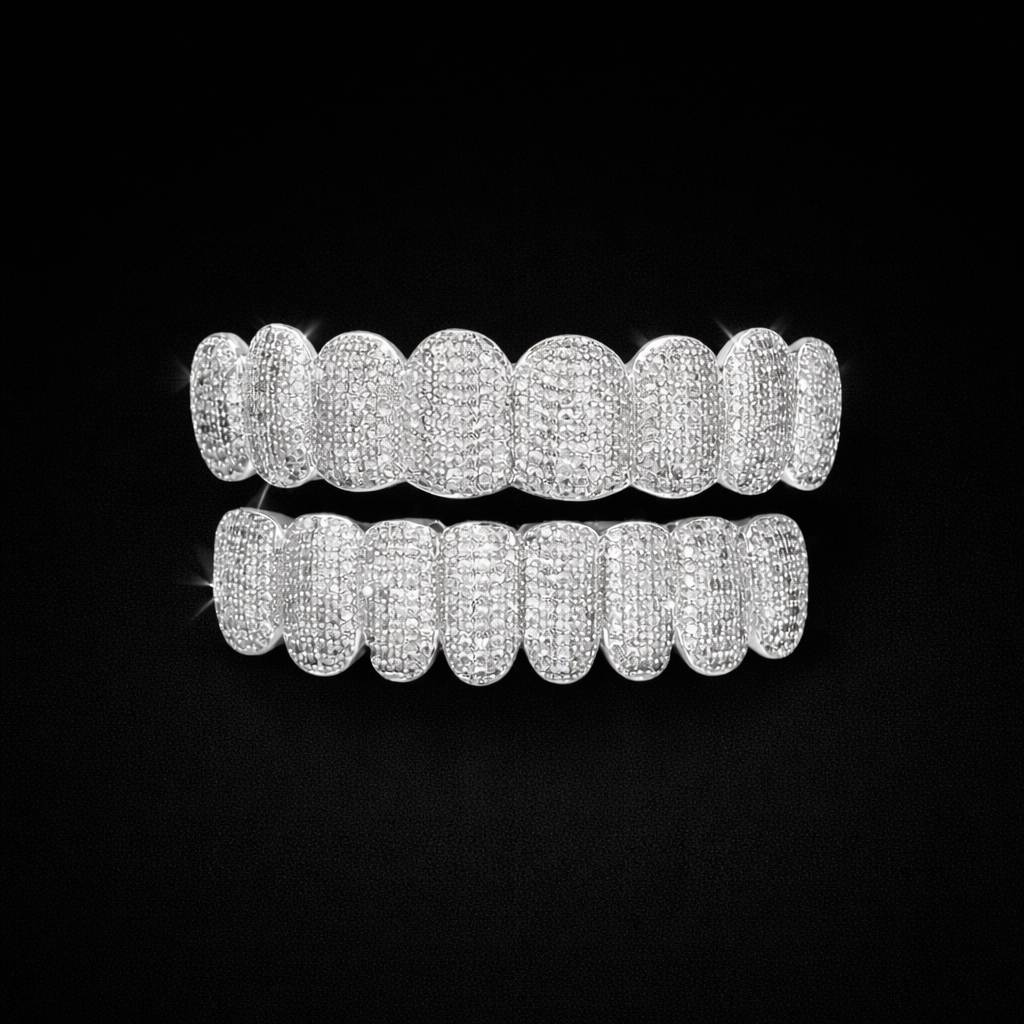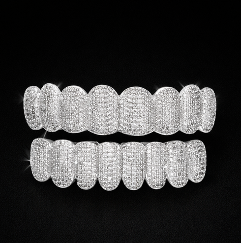 Iced Out Silver Grillz Hip Hop Diamond Teeth Caps Bling