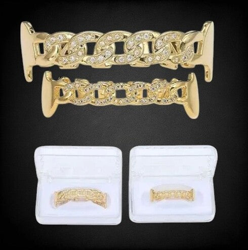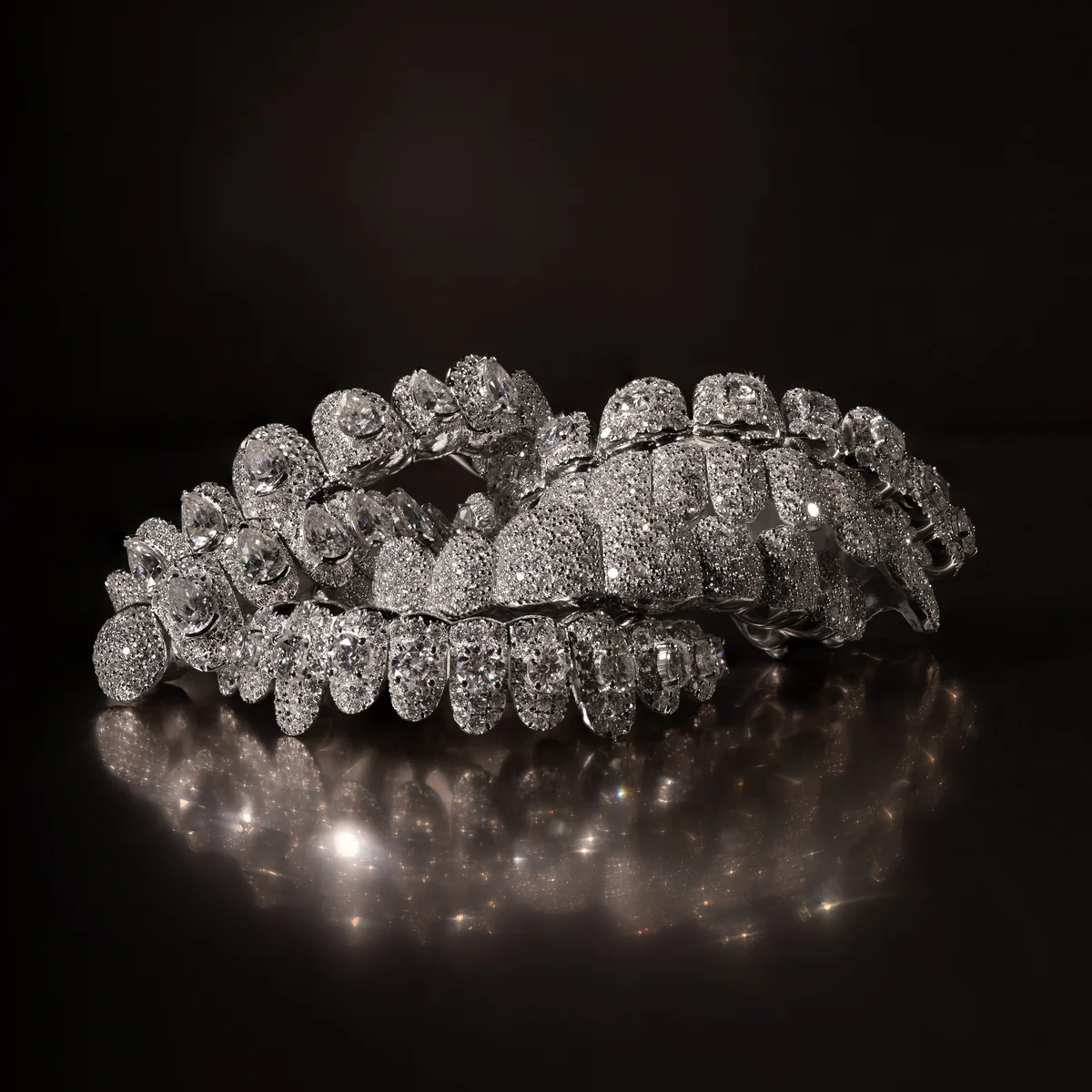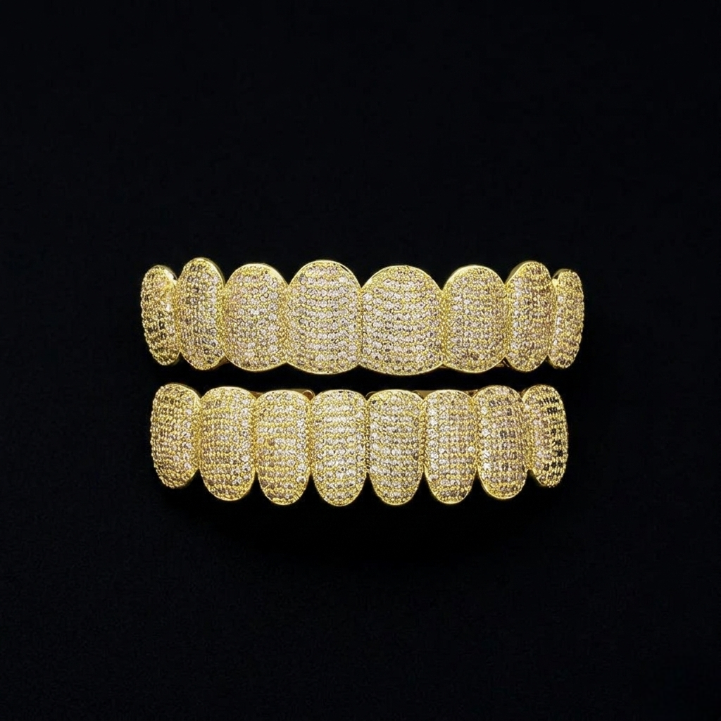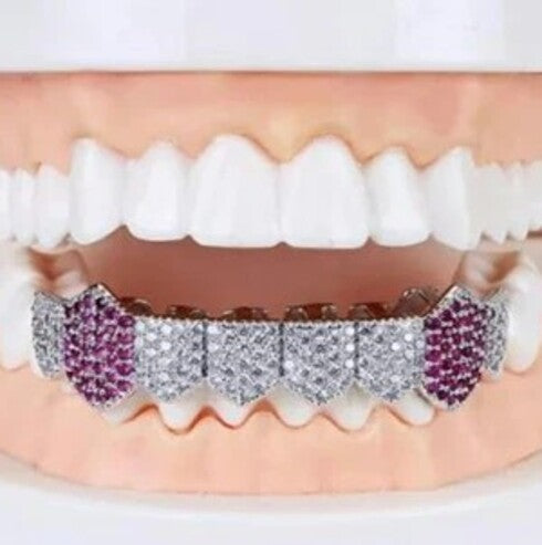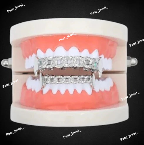 Iced Out Silver Grillz Hip Hop Diamond Teeth Caps Bling