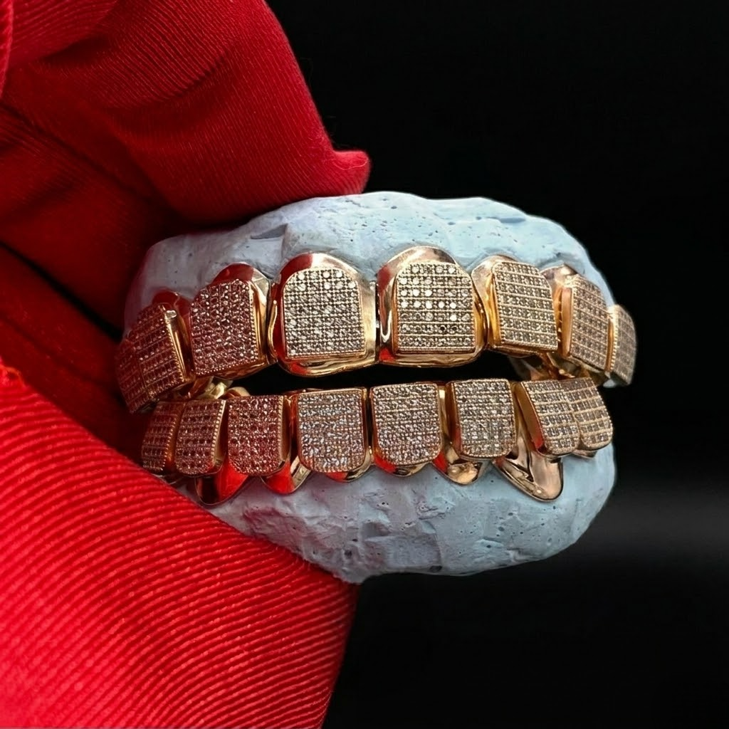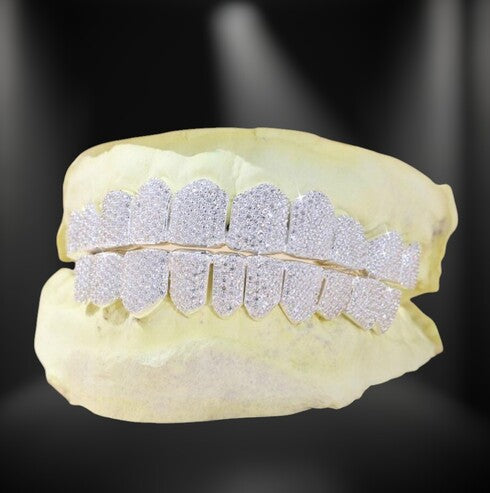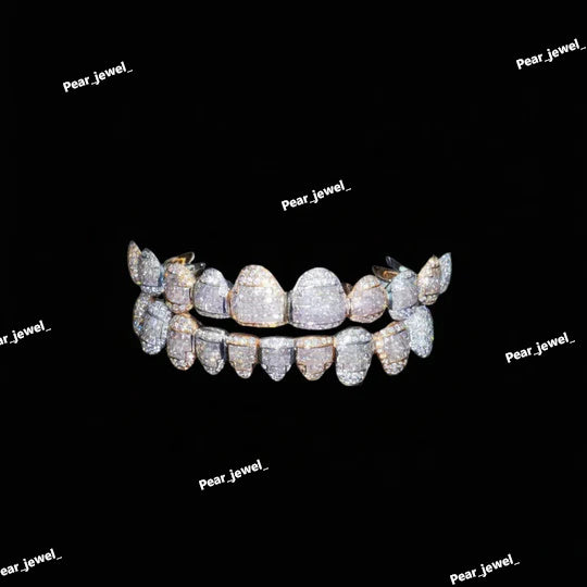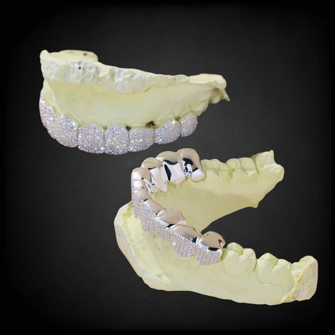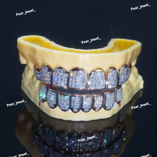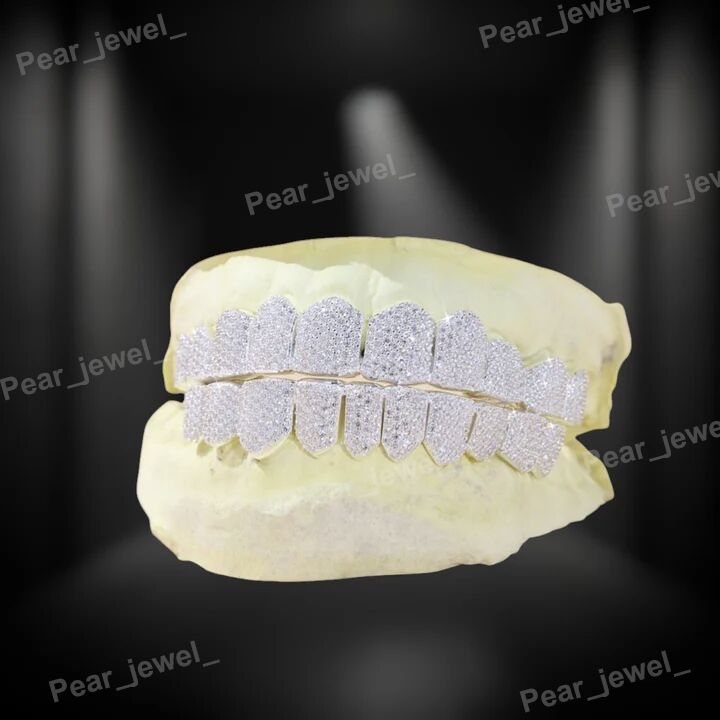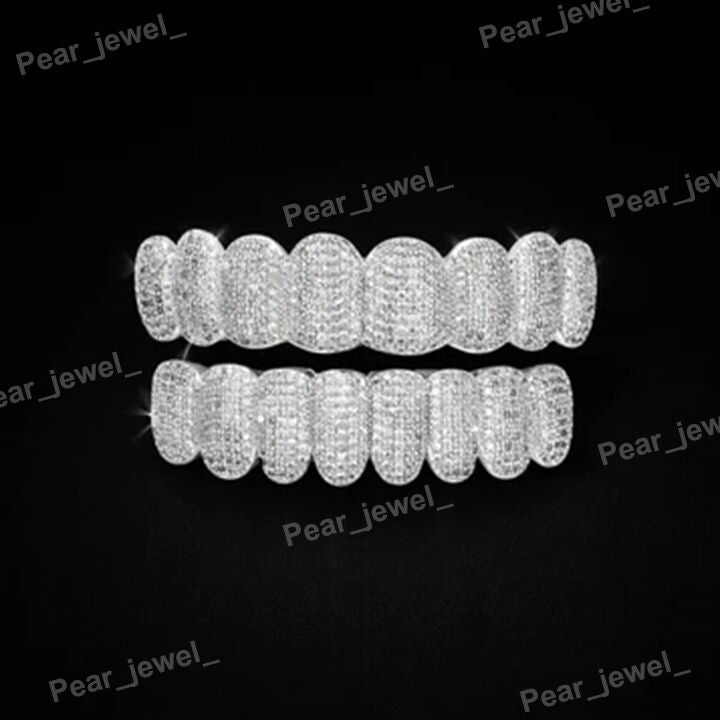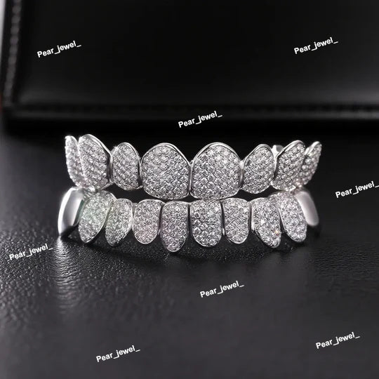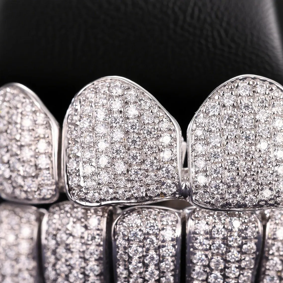Iced Out Grillz Set Moissanite Diamond Look 925 Silver Teeth Jewelry