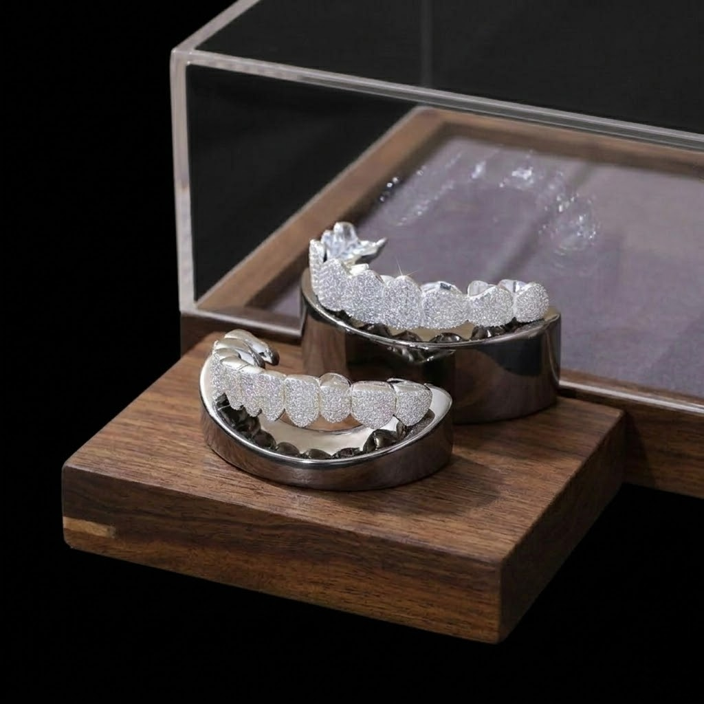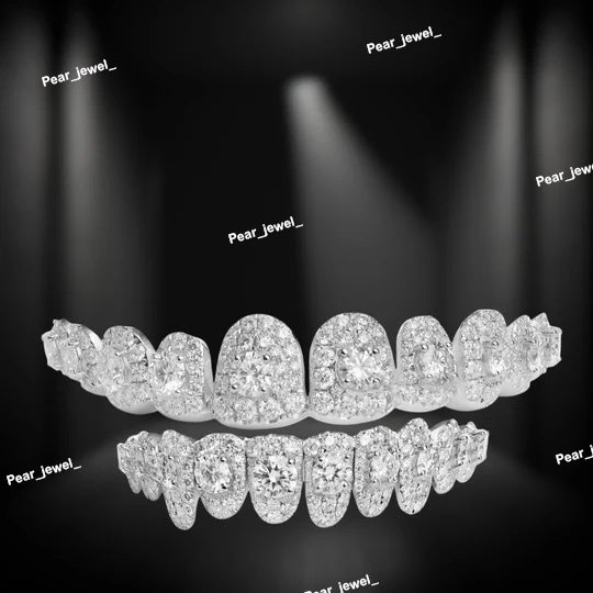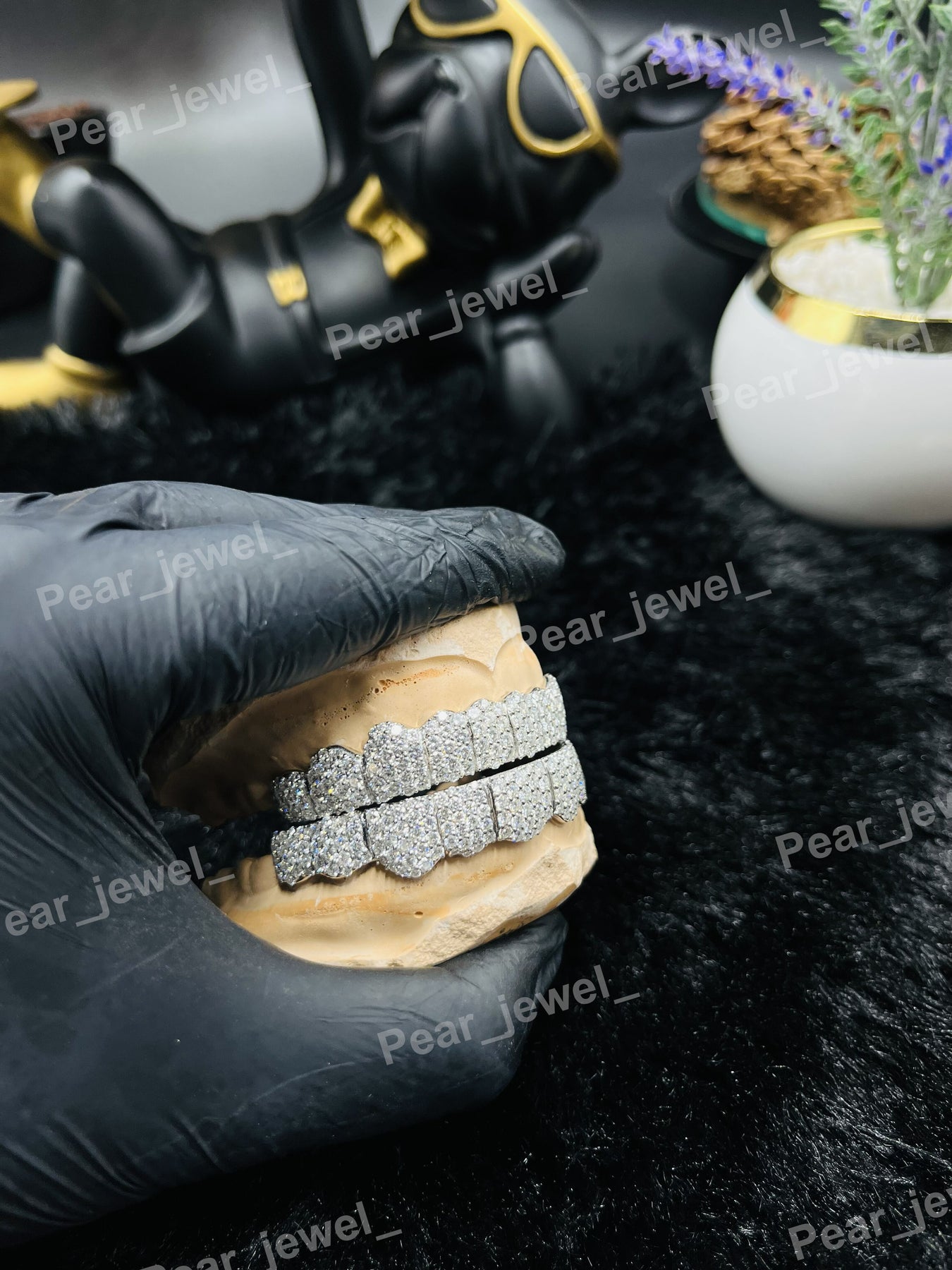 Iced Out Moissanite Diamond Grillz HipHop Bling Custom Silver