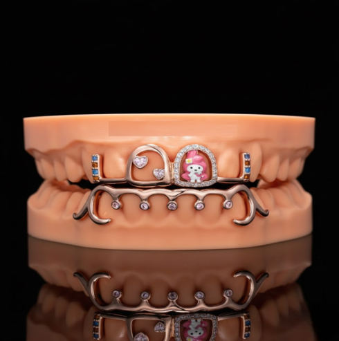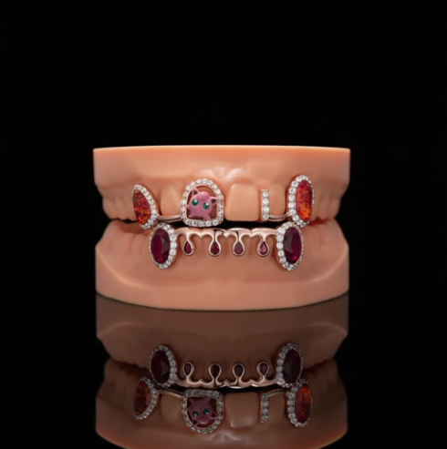 925 Sterling Silver VVS Red Moissanite Diamond Grillz