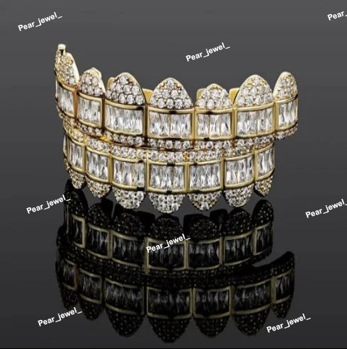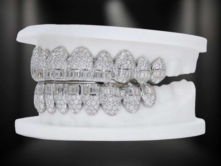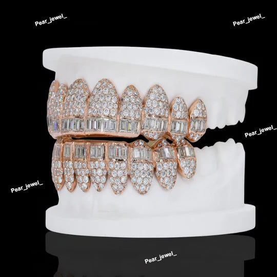 Iced Out 925 Silver VVS Baguette Moissanite Diamonds HipHop Grillz