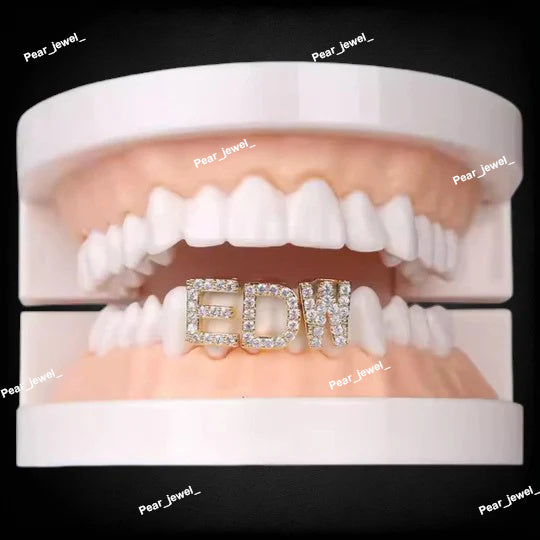 Customize Initial Letter Grillz 925 Silver Moissanite Jewelry
