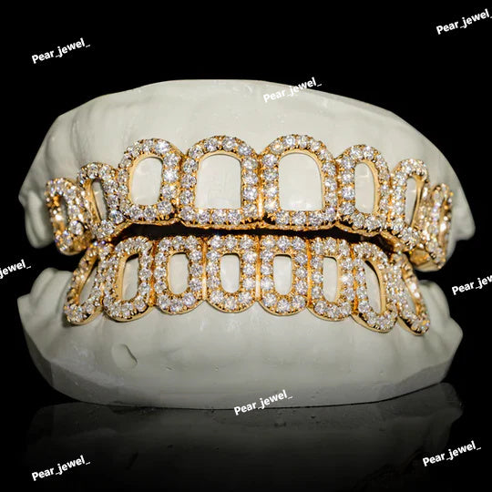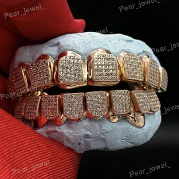 Iced Out Moissanite Diamond Grillz Set Hip Hop Bling Custom Style Party Wear Gift