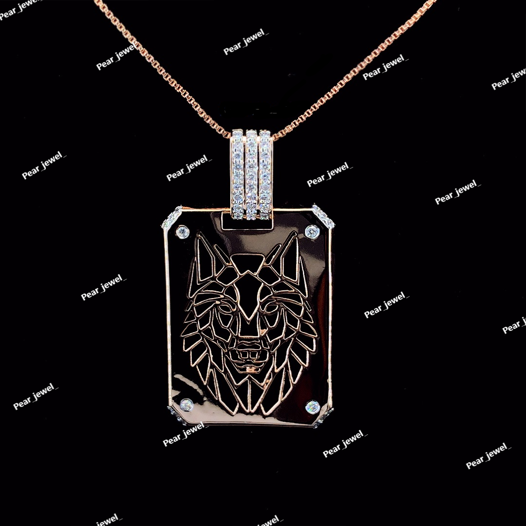 Luxury Wolf Head Penadnt Silver Iced Out Moissanite Diamond Style Hip Hop Pendant Men Gift