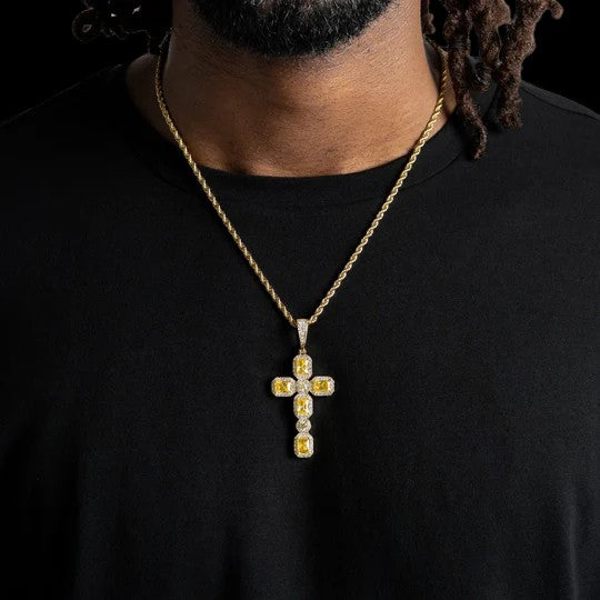 Canary Cluster Cross Pendant Gold