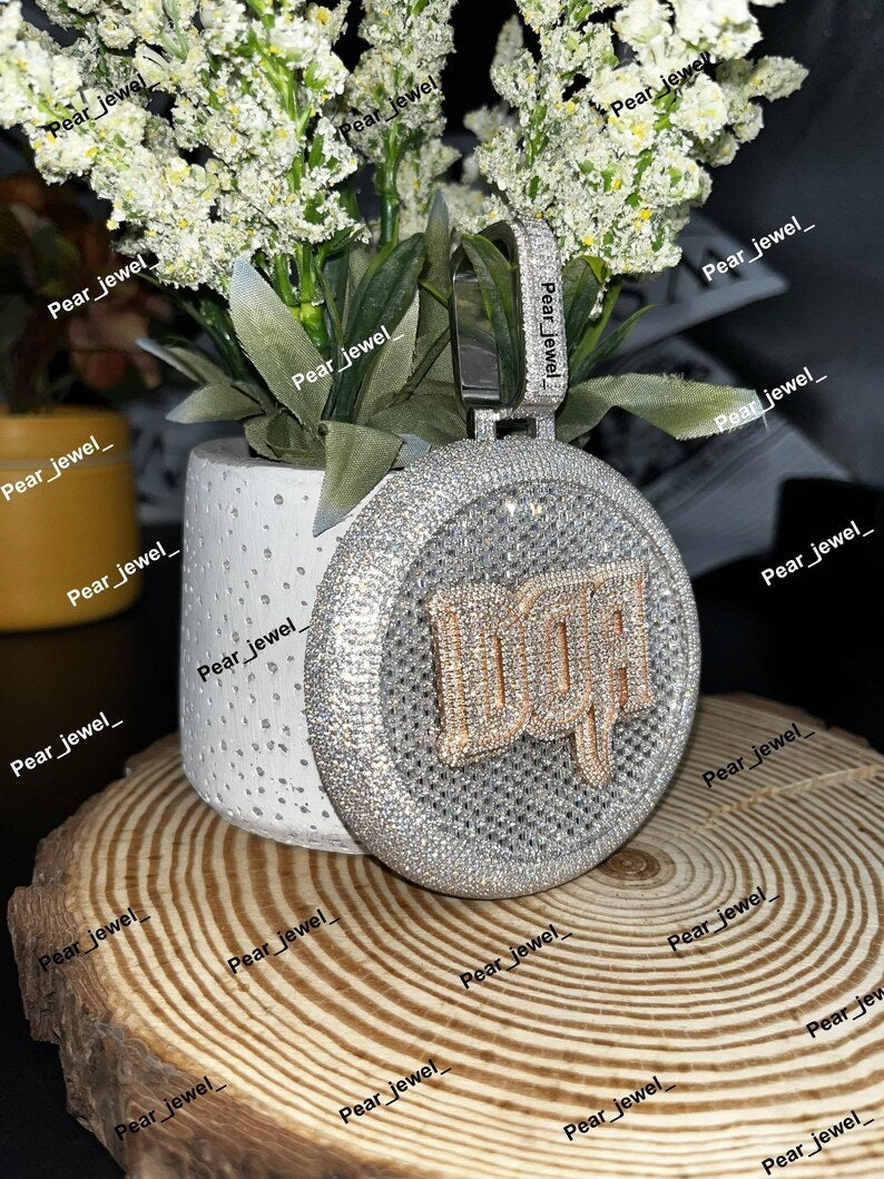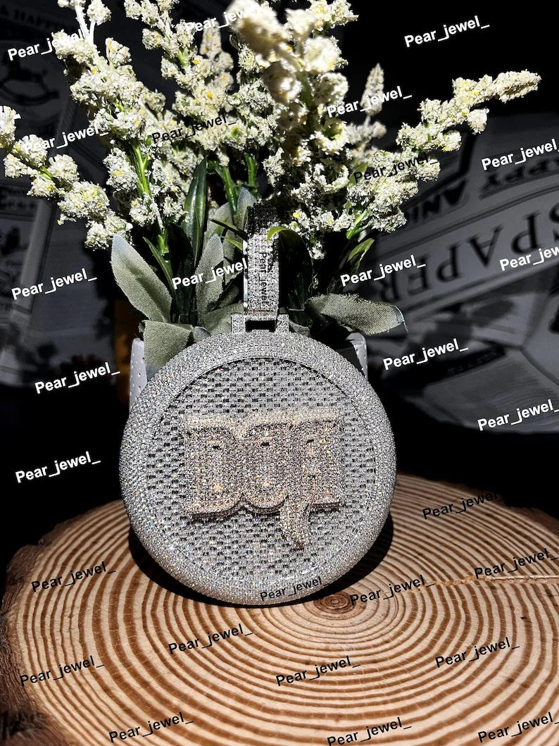 Custom Letter Iced Out Round Pendant With Moissanite Diamond Look 925