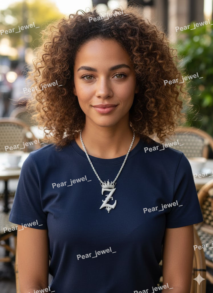 Iced Out Crown Personalize Z Pendant Moissanite Diamond Hip Hop Bling Necklace