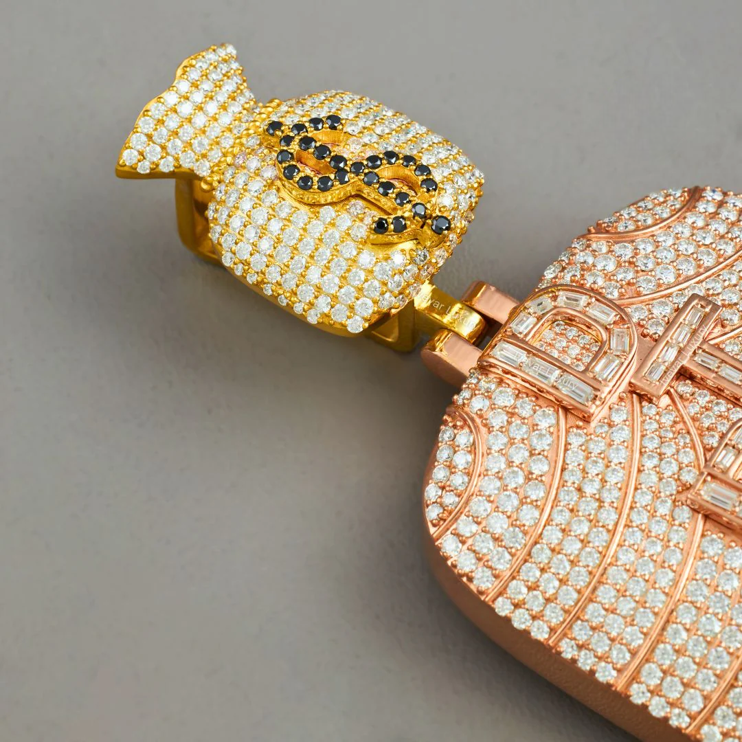 Iced Buddha Money Bag moissanite Diamond Pendant Silver Jewelry