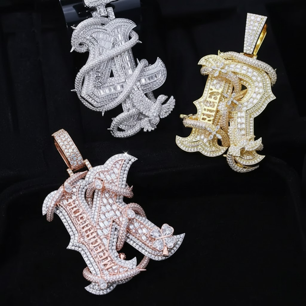 Iced Out Rich Letter Pendant With VVS Moissanite Diamond