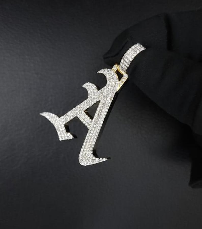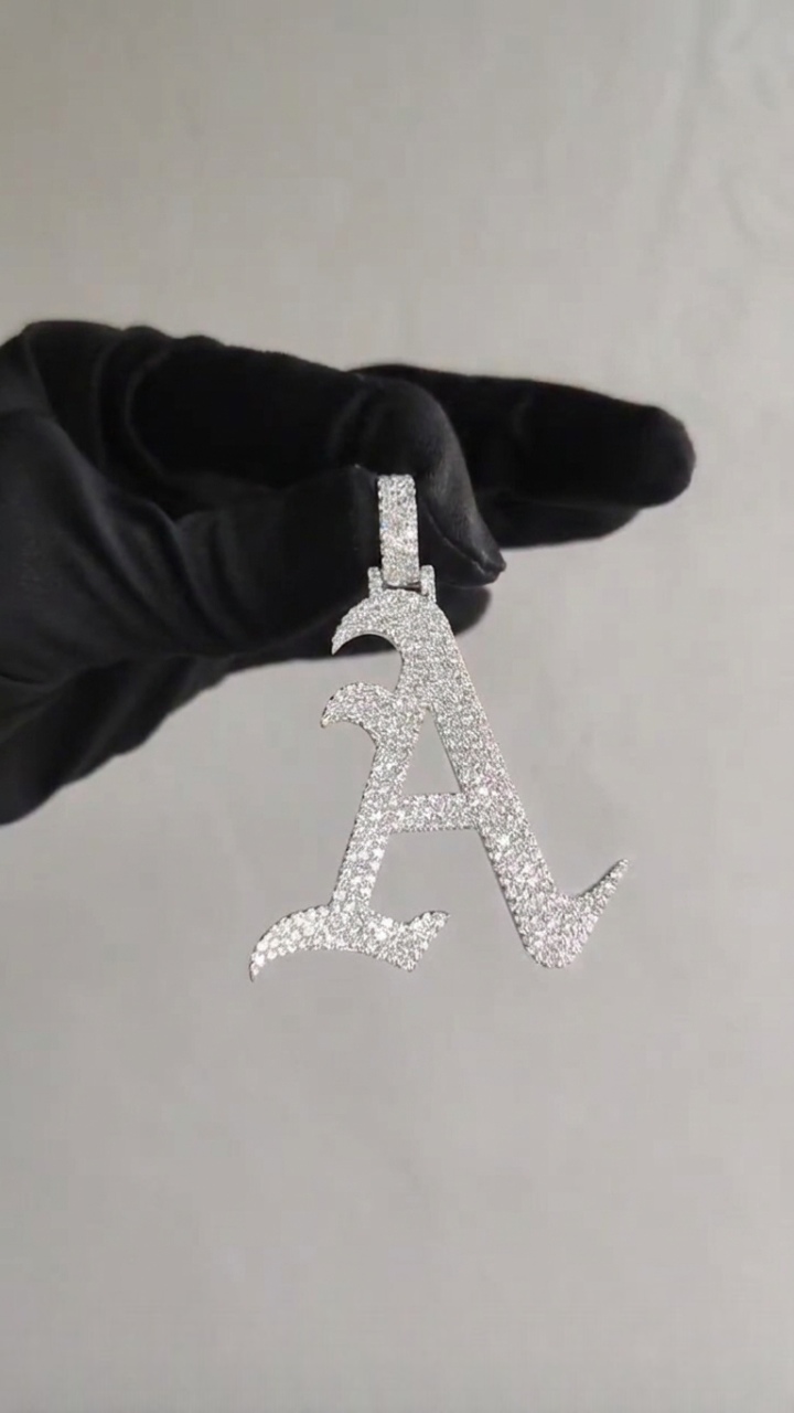 925 Silver Custome Letter Pendant In VVS Moissanite Stone