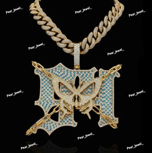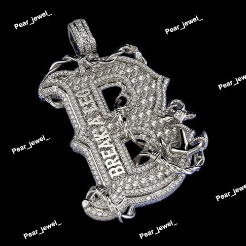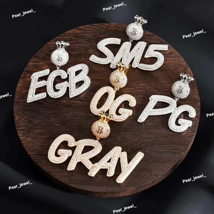 Iced Out Bling Face Letter Pendant Moissanite Diamond Look
