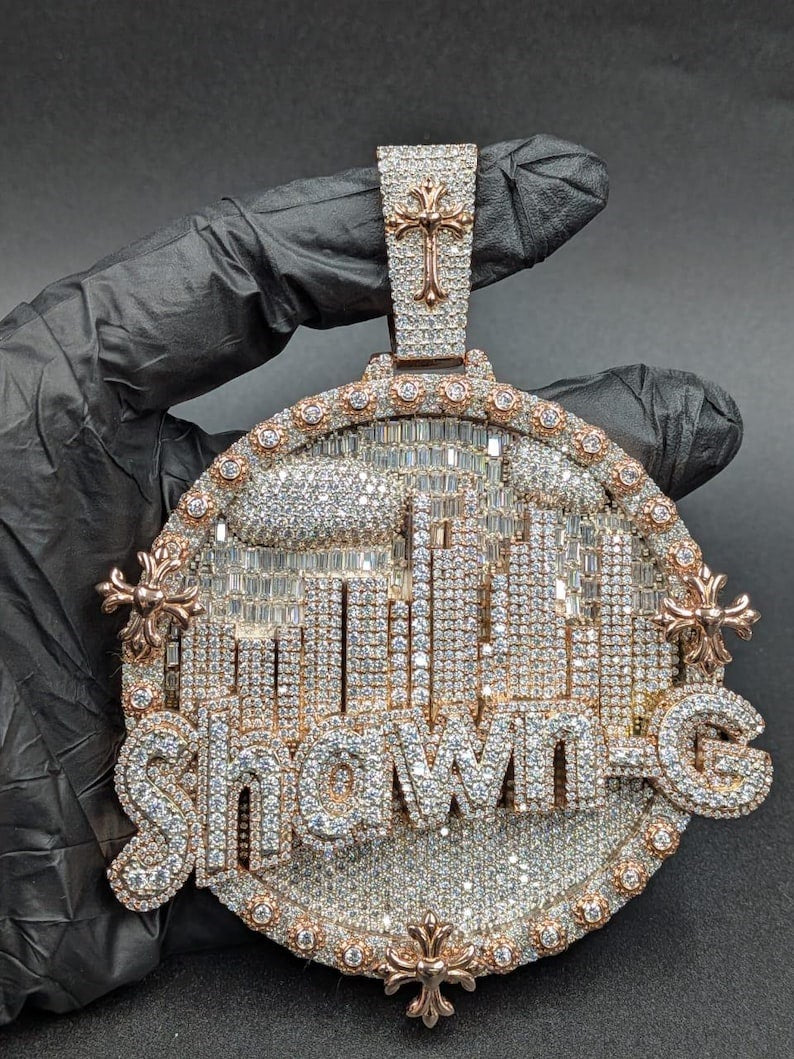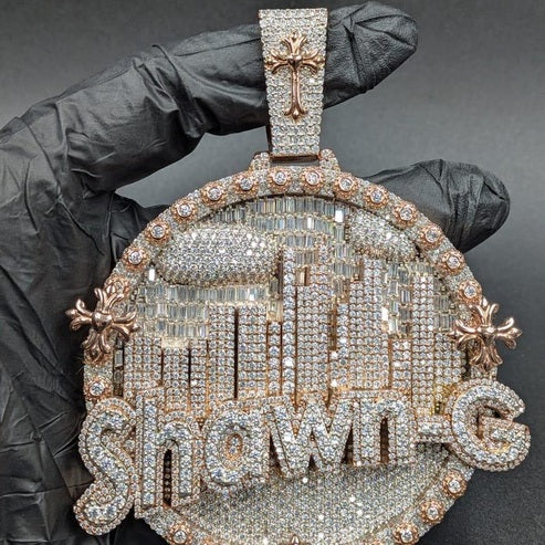 Rhodium Plated Custom City Skyline Hip Hop Luxury Moissanite Statement Pendant