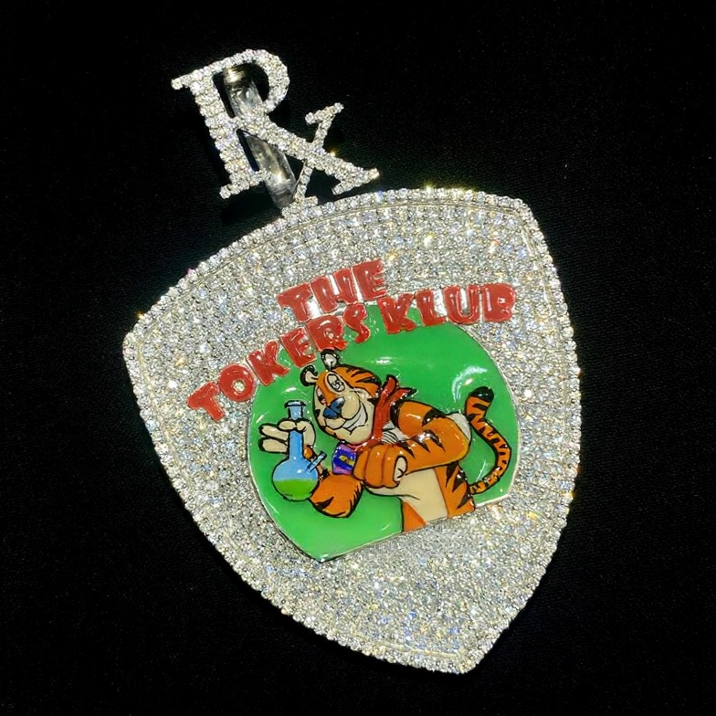 925 Silver Iced HipHop Moissanite Custom Tiger Design Night Glow Dark Spinner Pendant