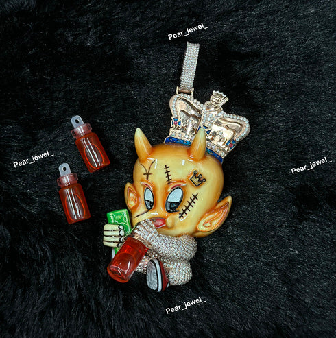 Iced Out Cartoon Devil Pendant In 925 Silver Pendant With Moissanite Diamond