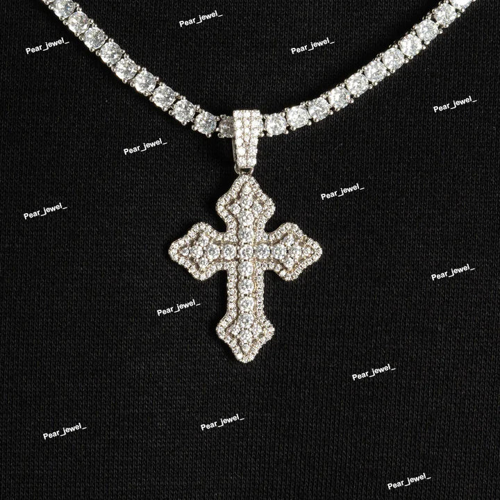 Iced Out Cross Pendant In 925 Silver Pendant Moissanite Diamond