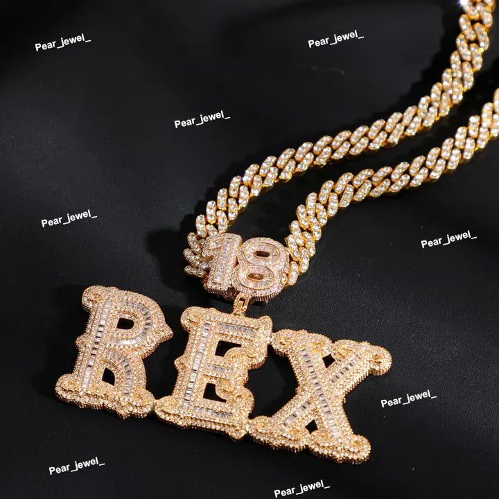 Iced Custom Number One Letter Pendant Moissanite