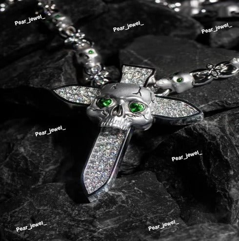 Skeleton Cross With Green Eyes Pendant