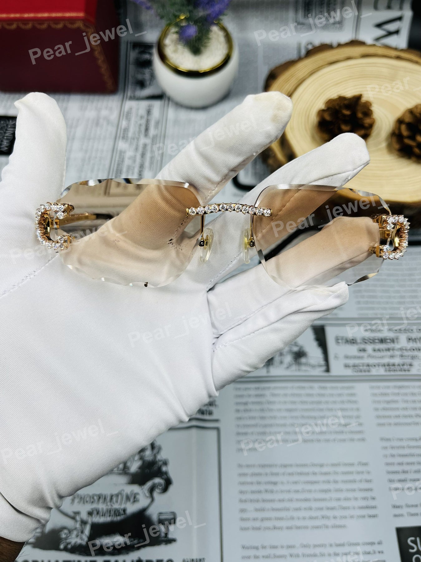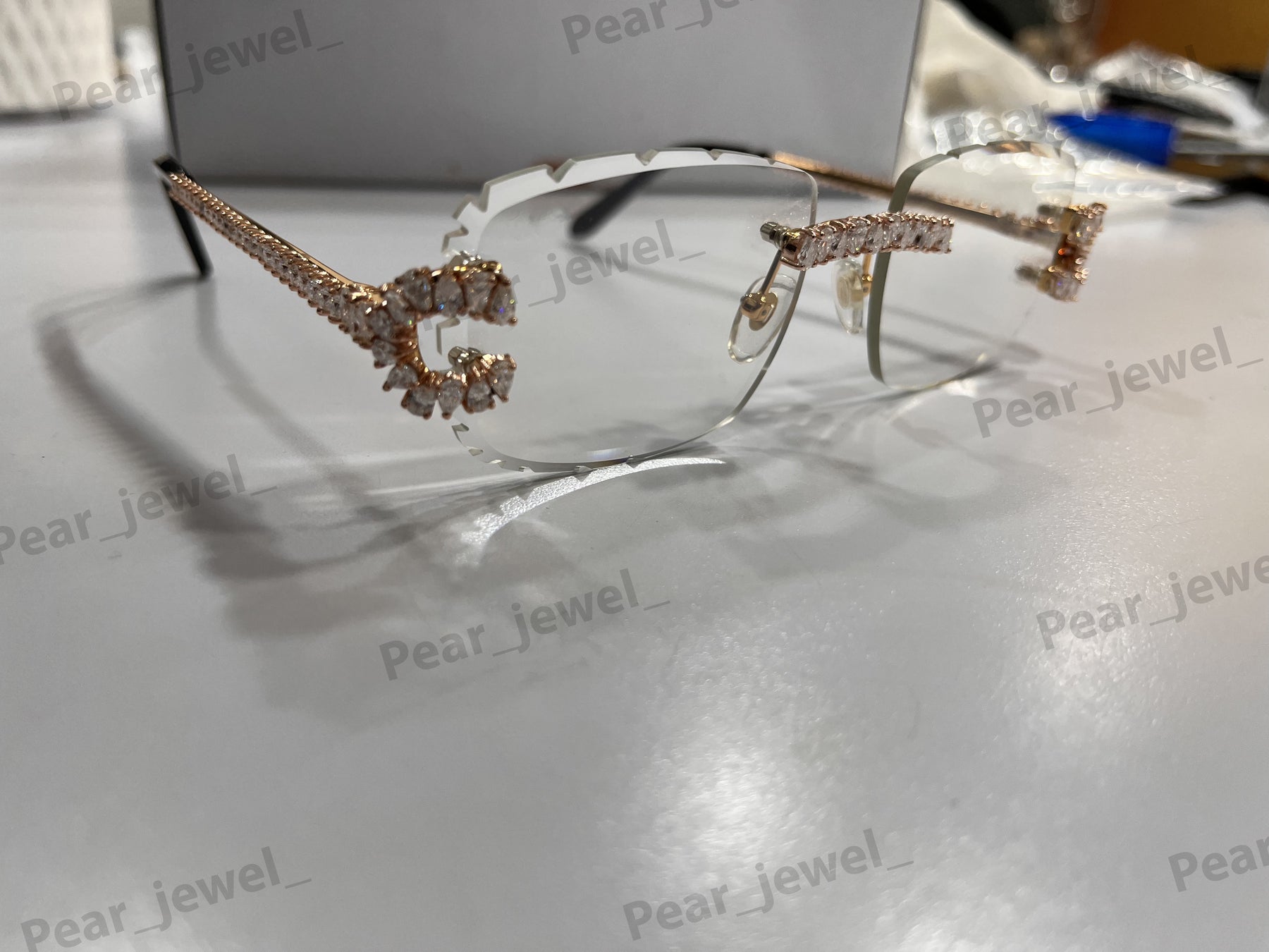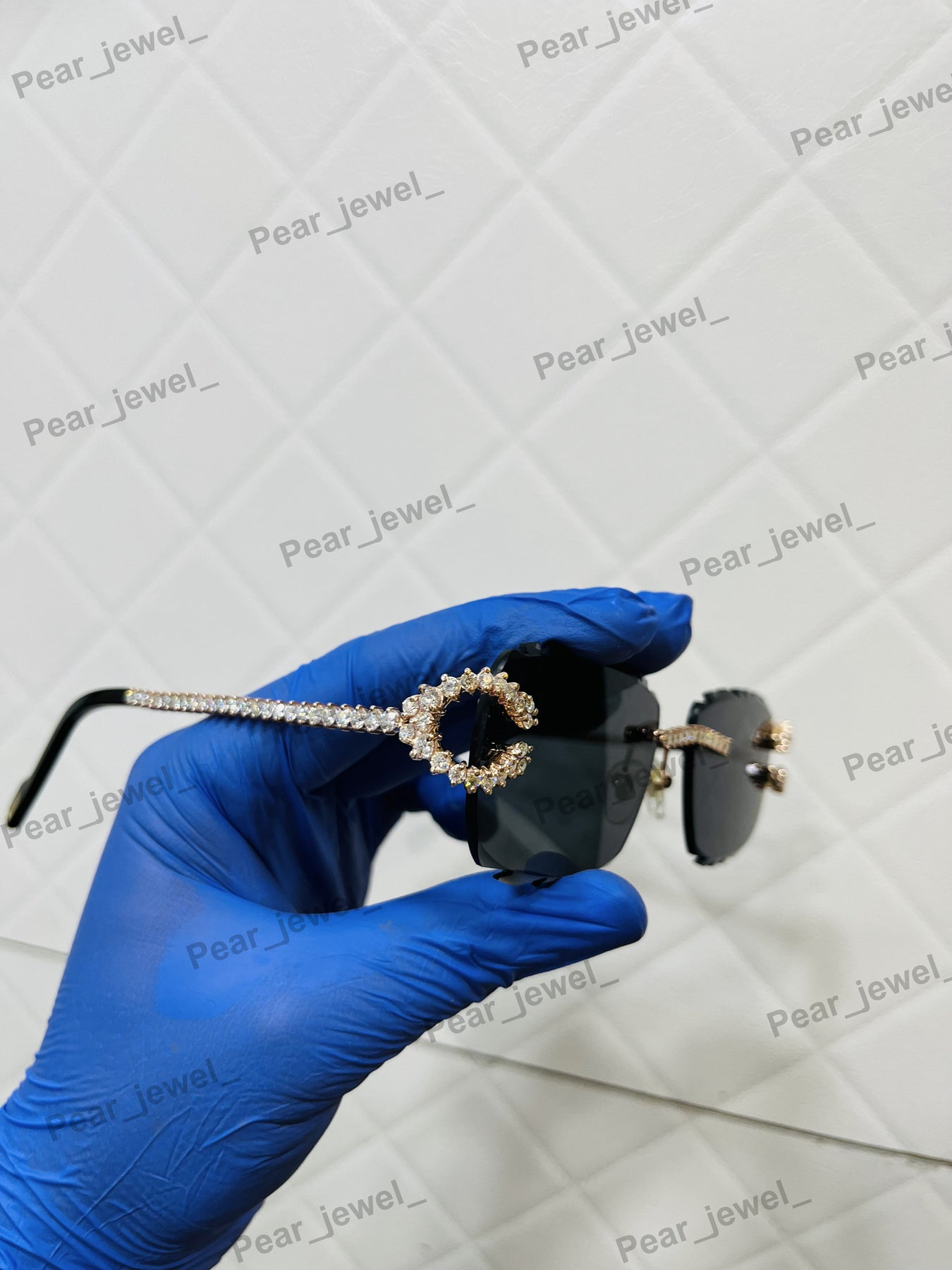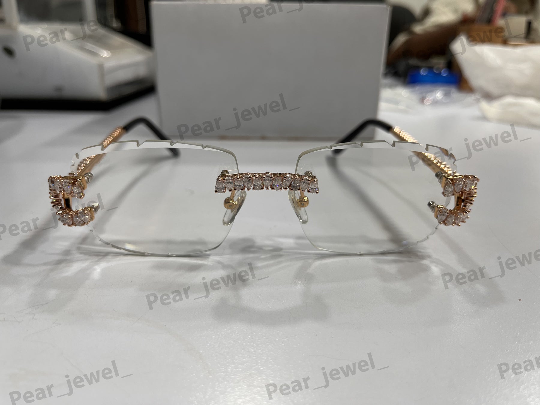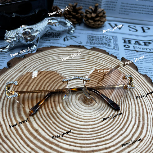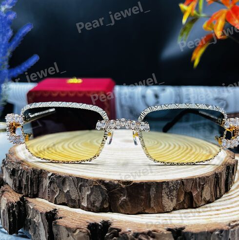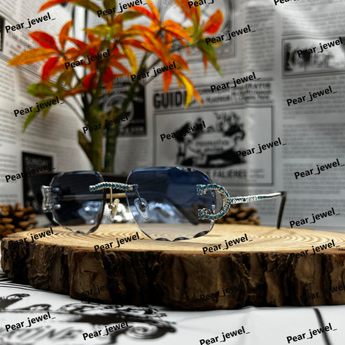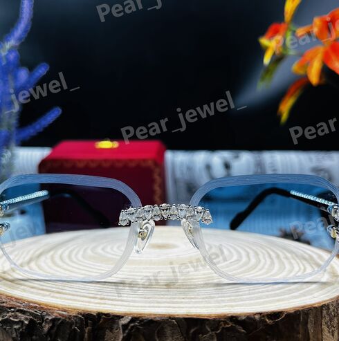 Iced Out 925 Silver Rimless Glasses Pear Cut Moissanite Unique Cut Sunglasses