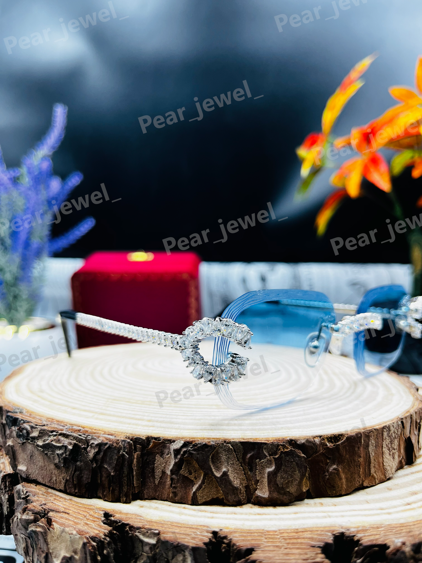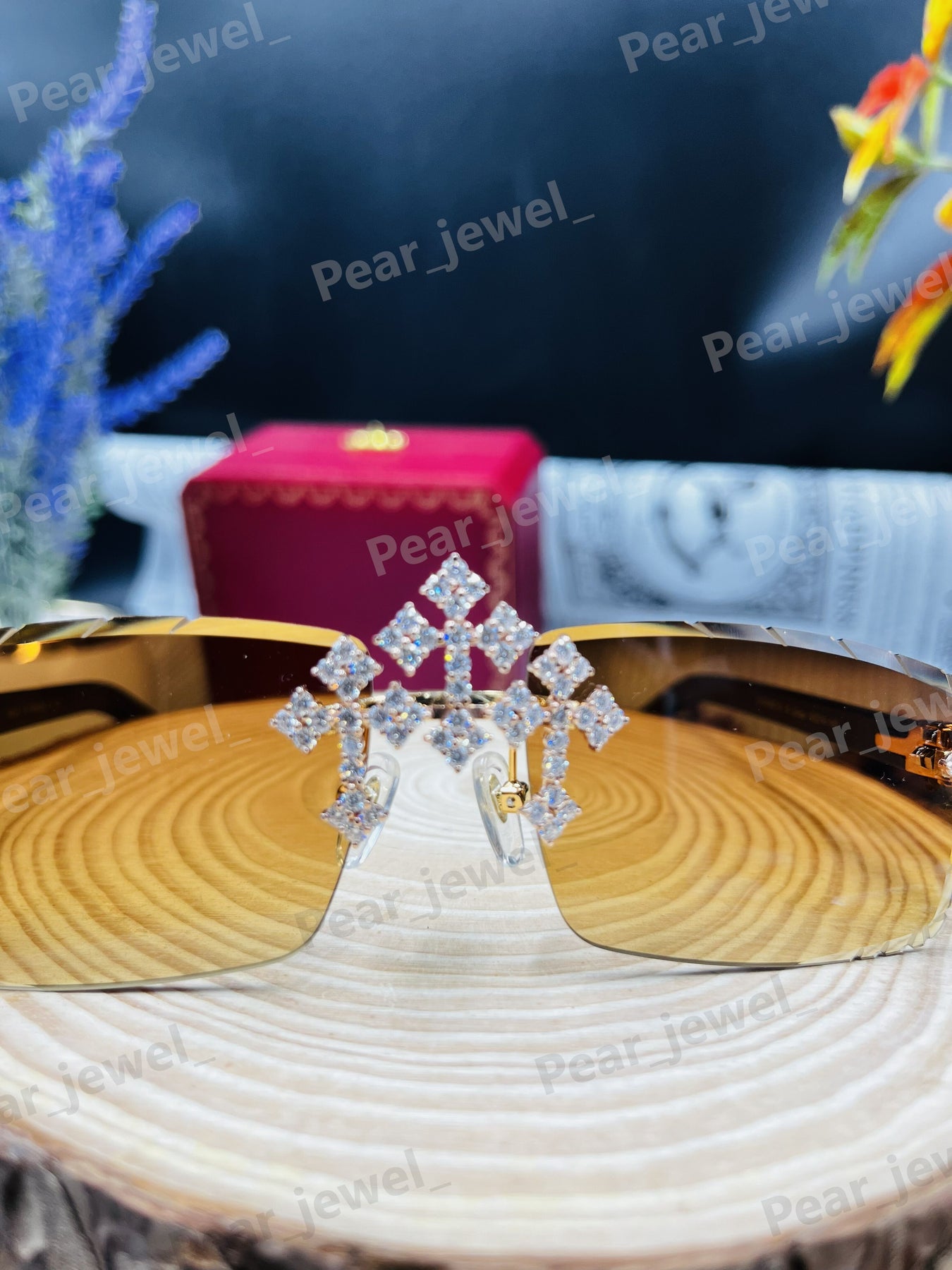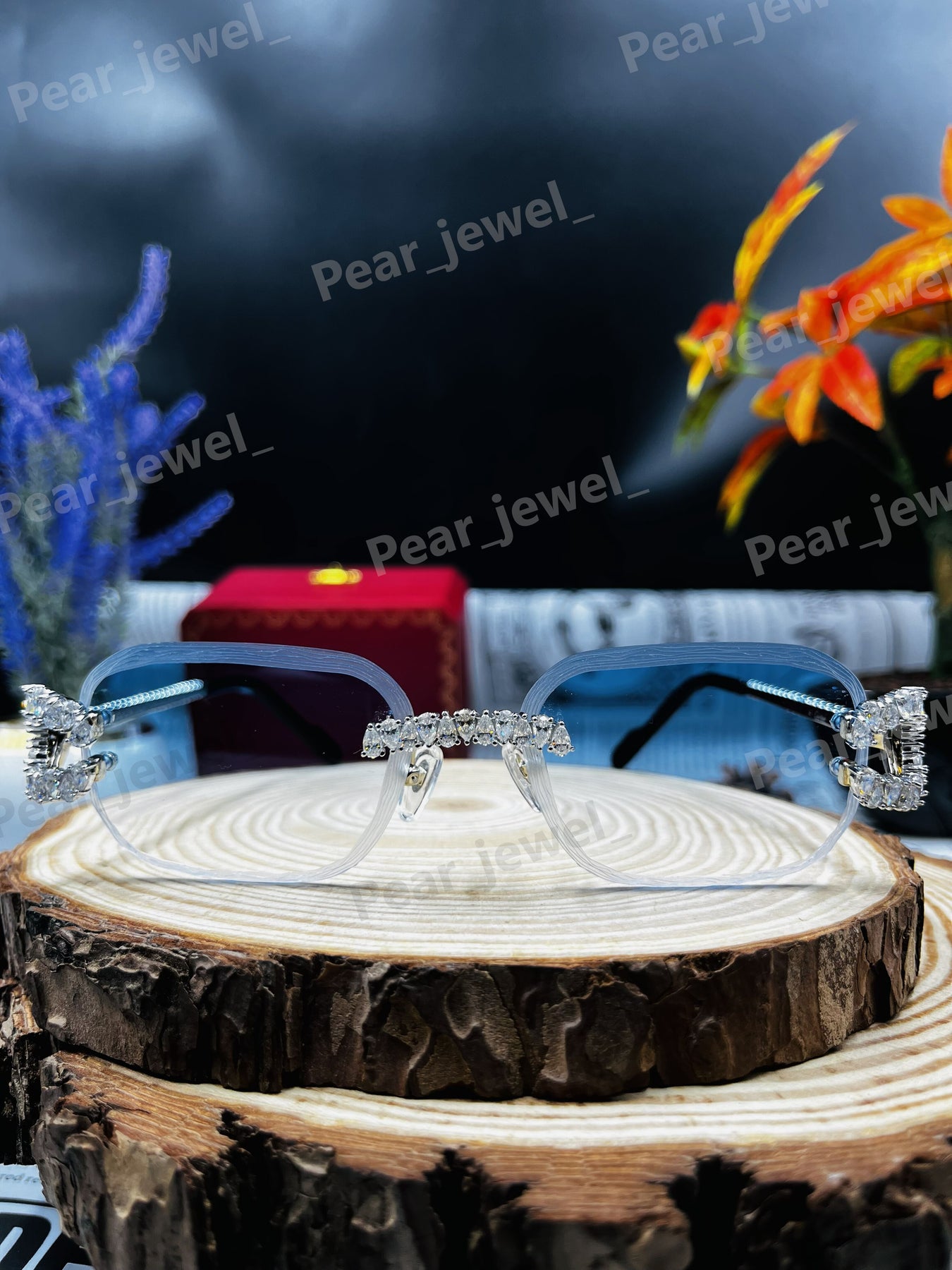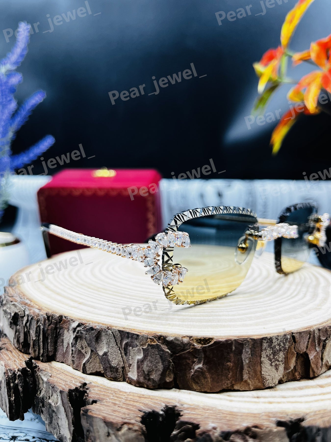 Iced Out 925 Silver Rimless Glasses Pear Cut Moissanite Unique Cut Sunglasses