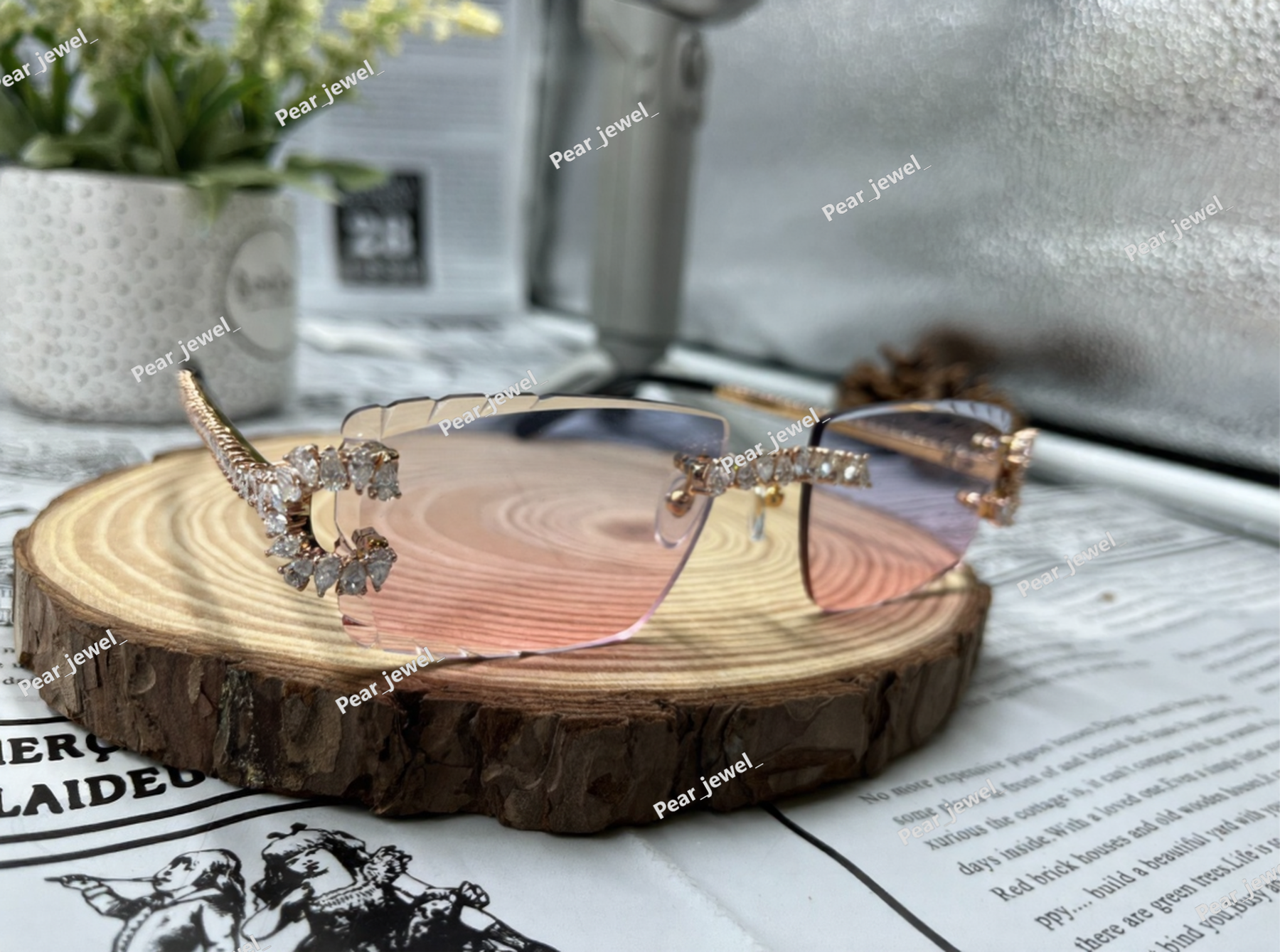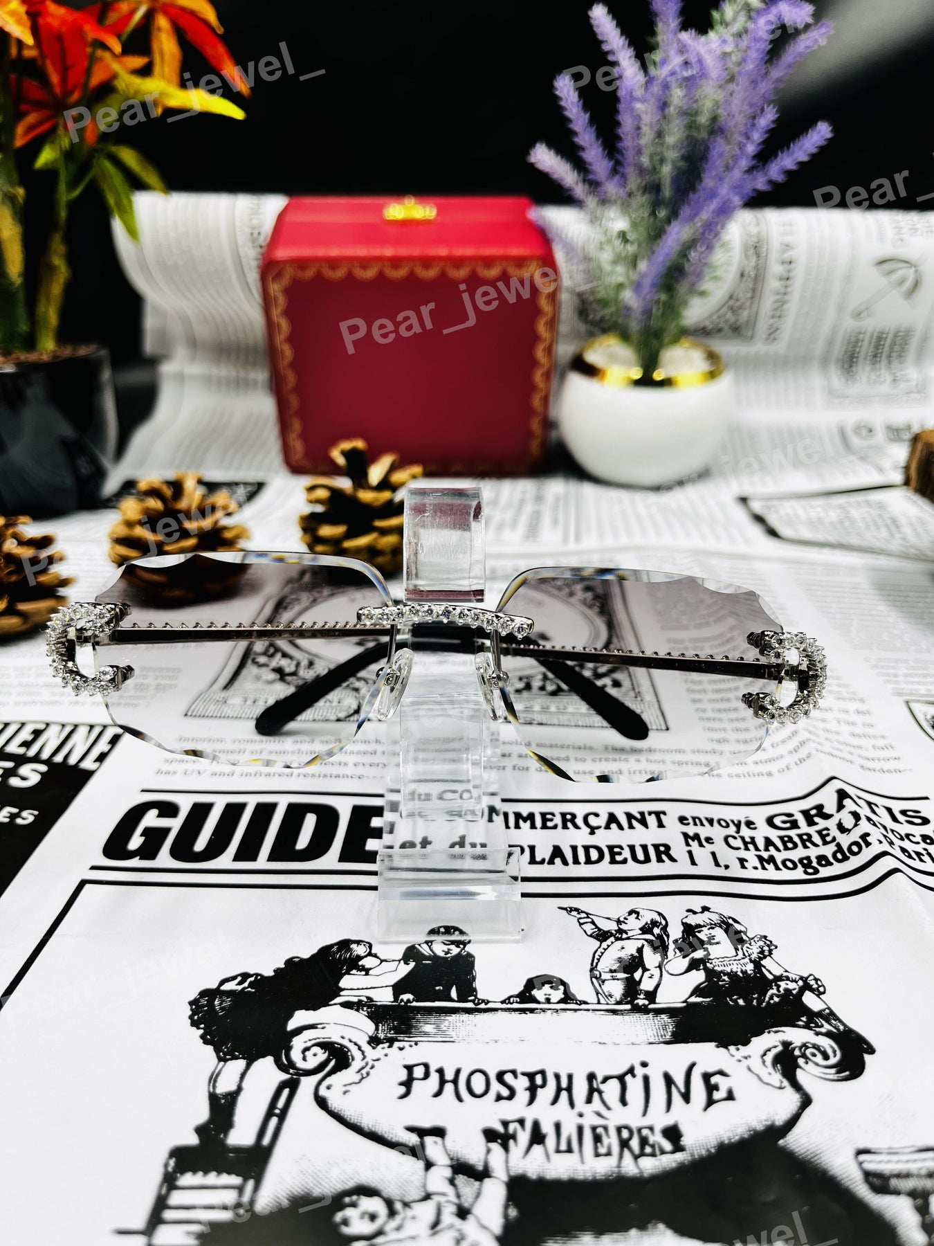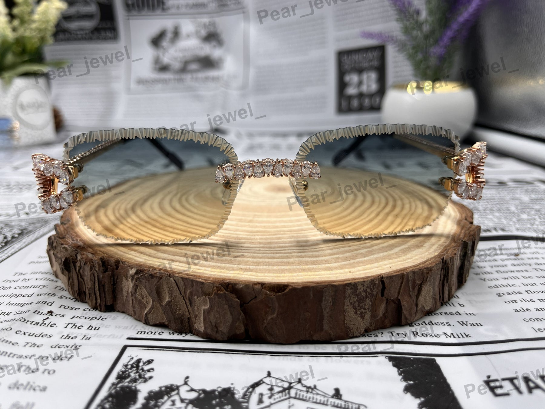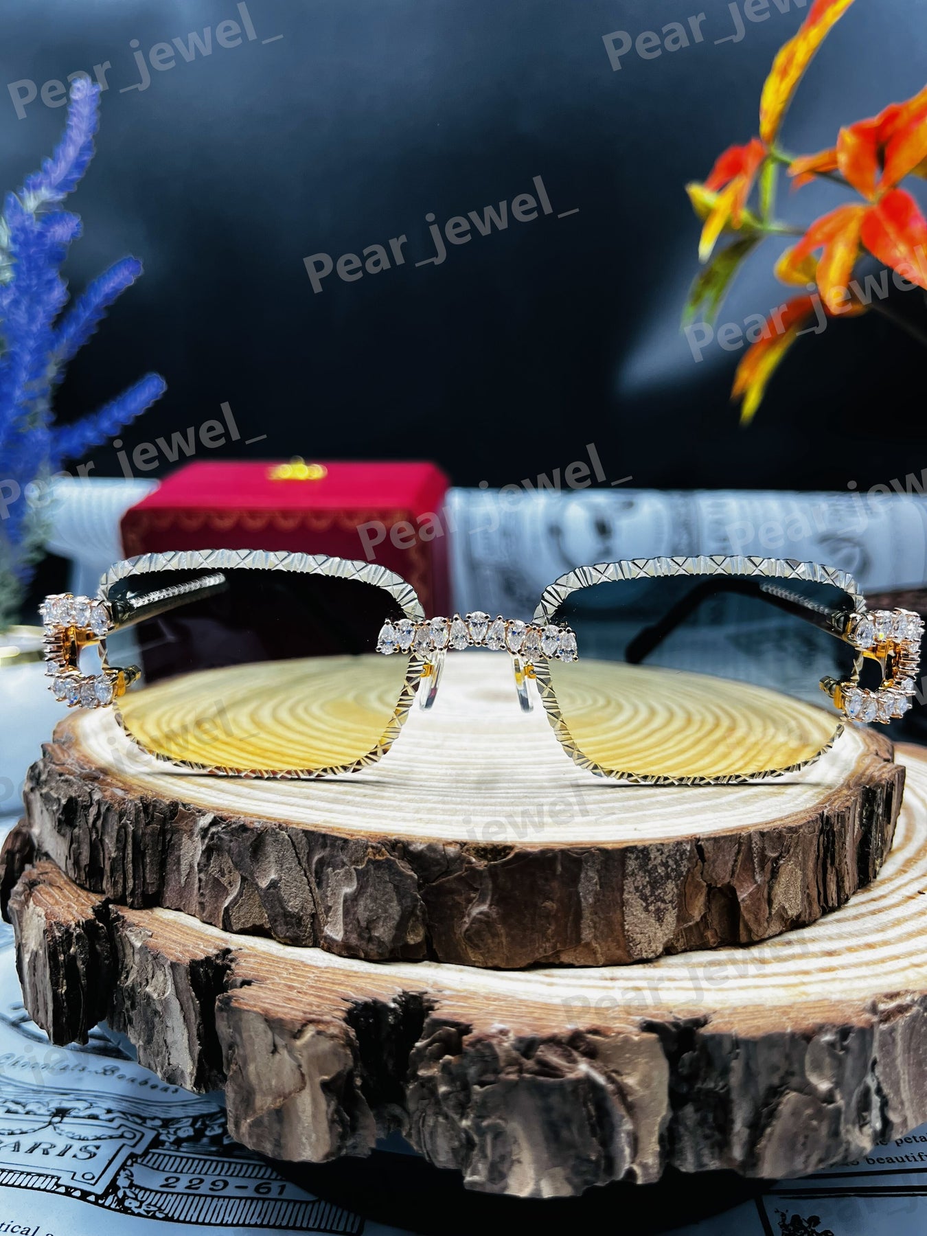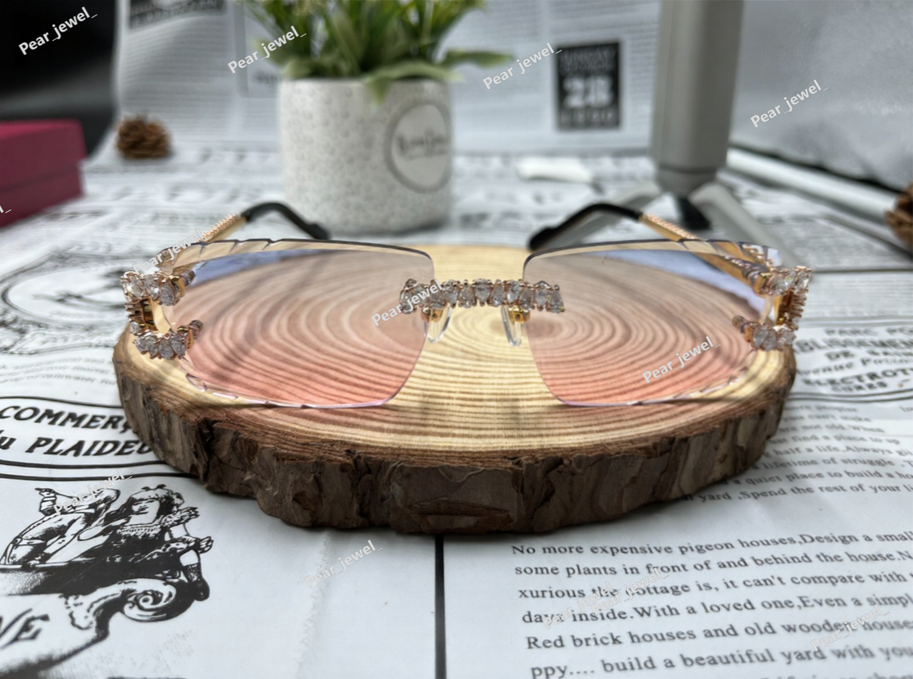 Iced Out 925 Silver Rimless Glasses Pear Cut Moissanite Unique Cut Sunglasses