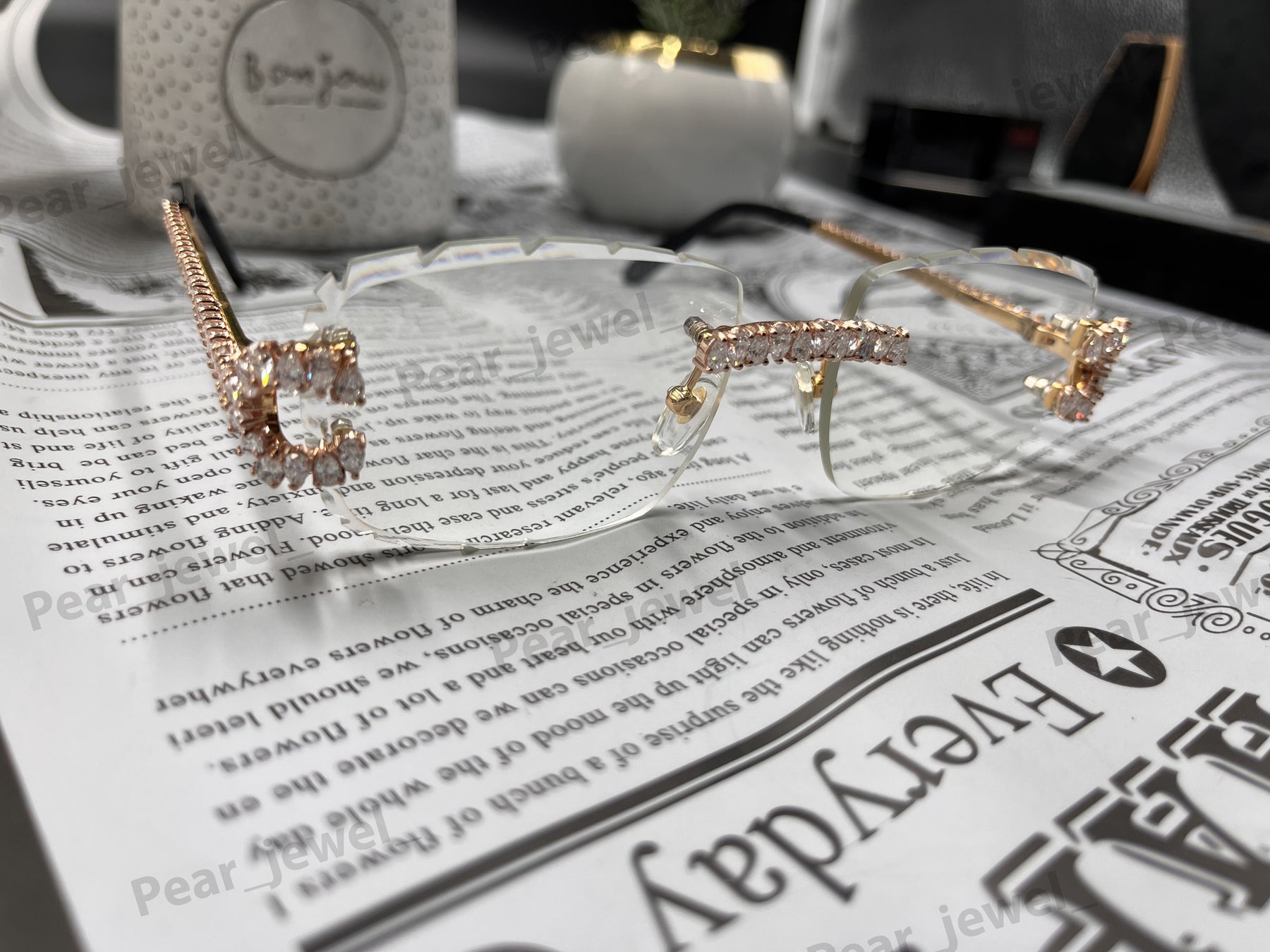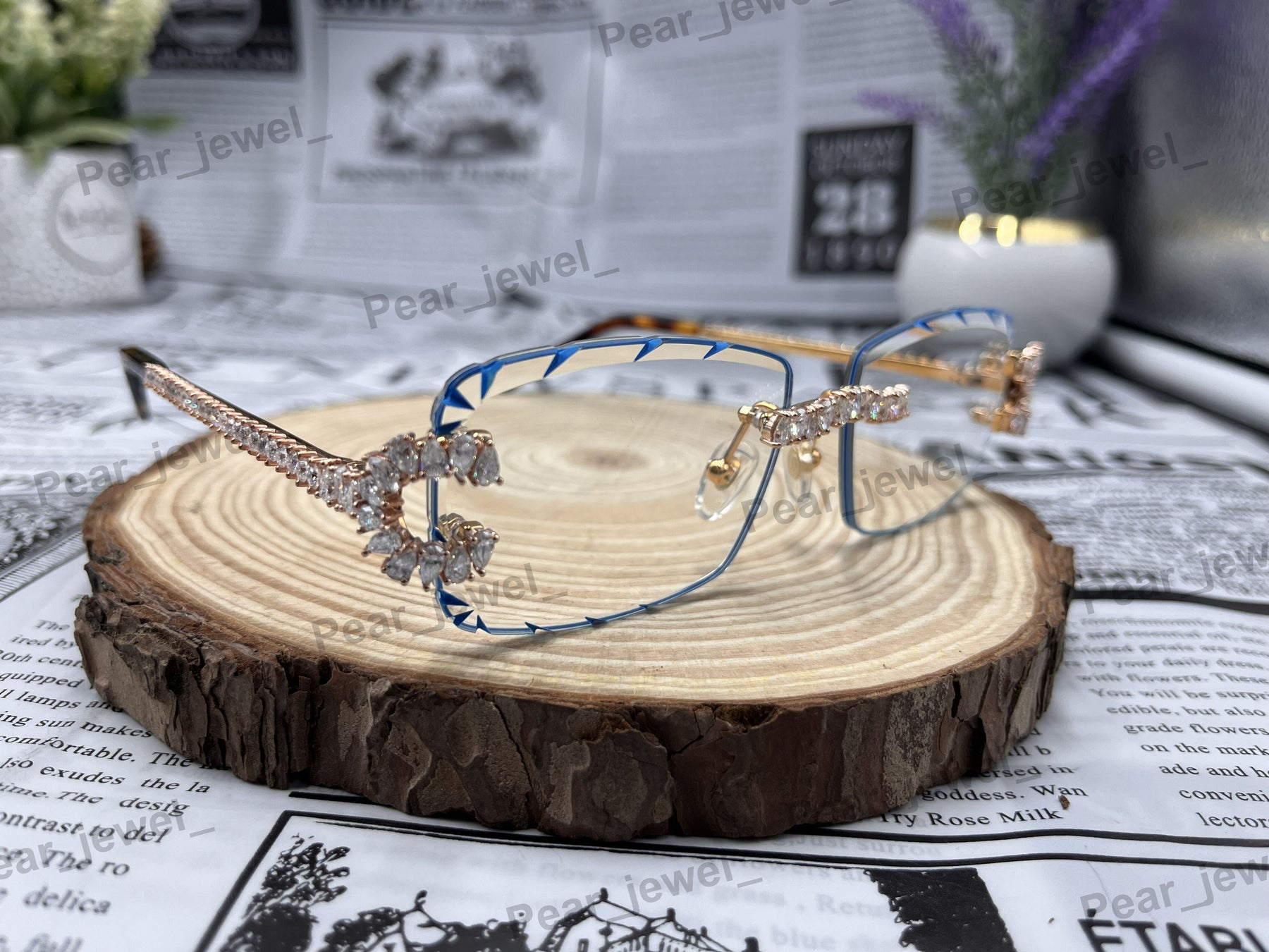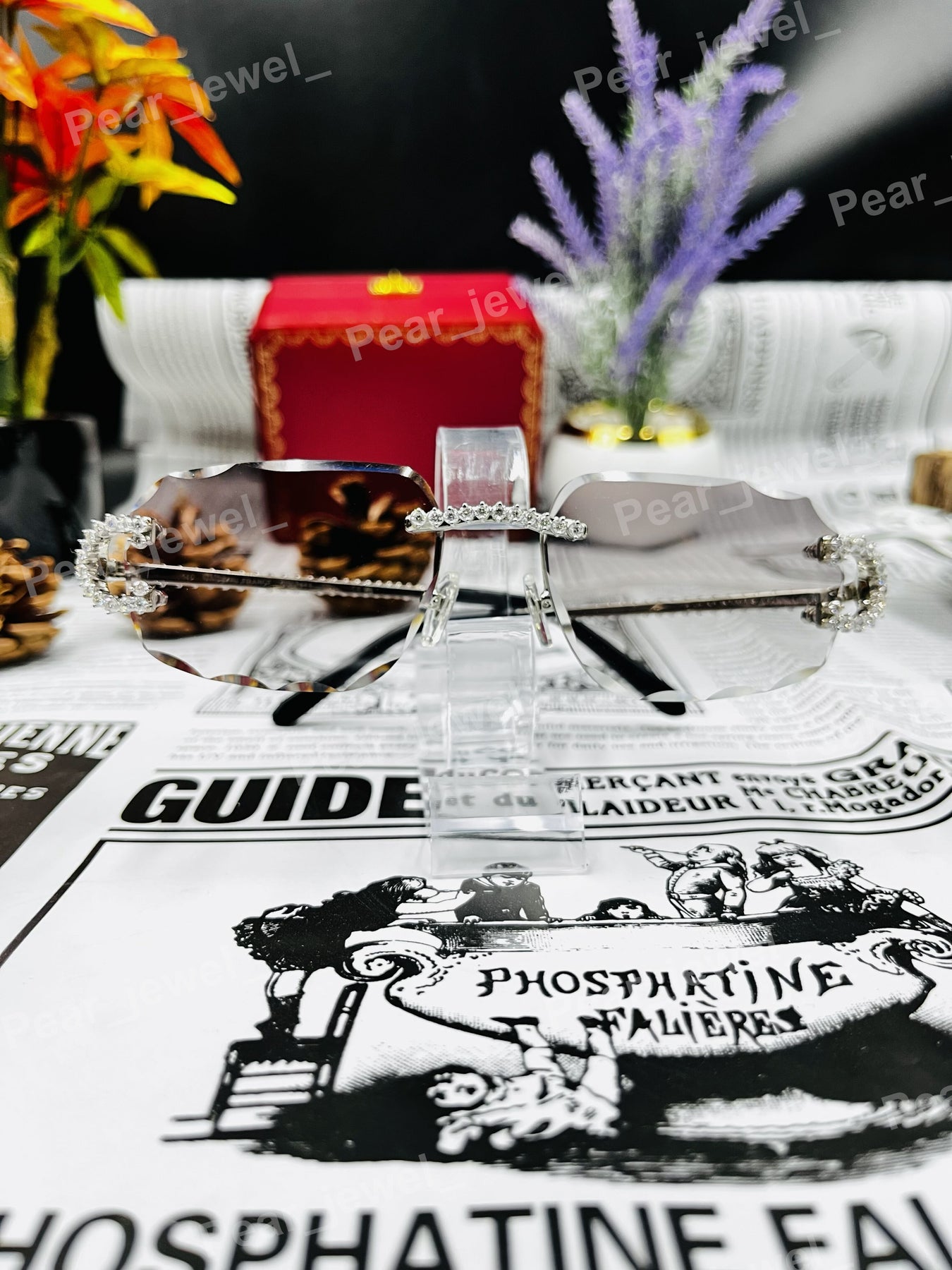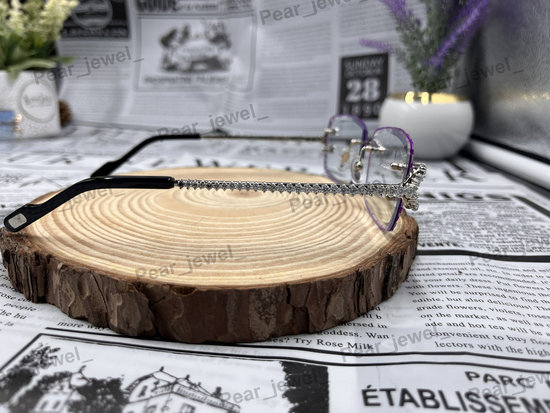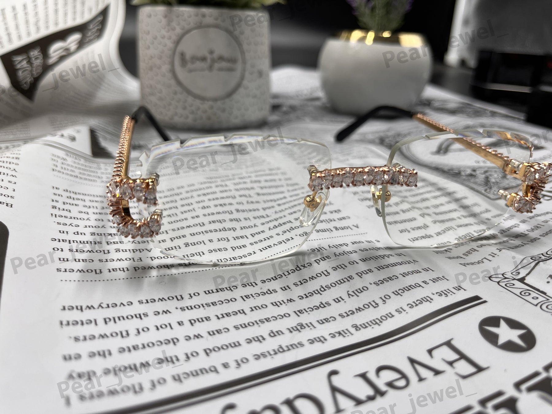 Iced Out 925 Silver Rimless Glasses Pear Cut Moissanite Unique Cut Sunglasses