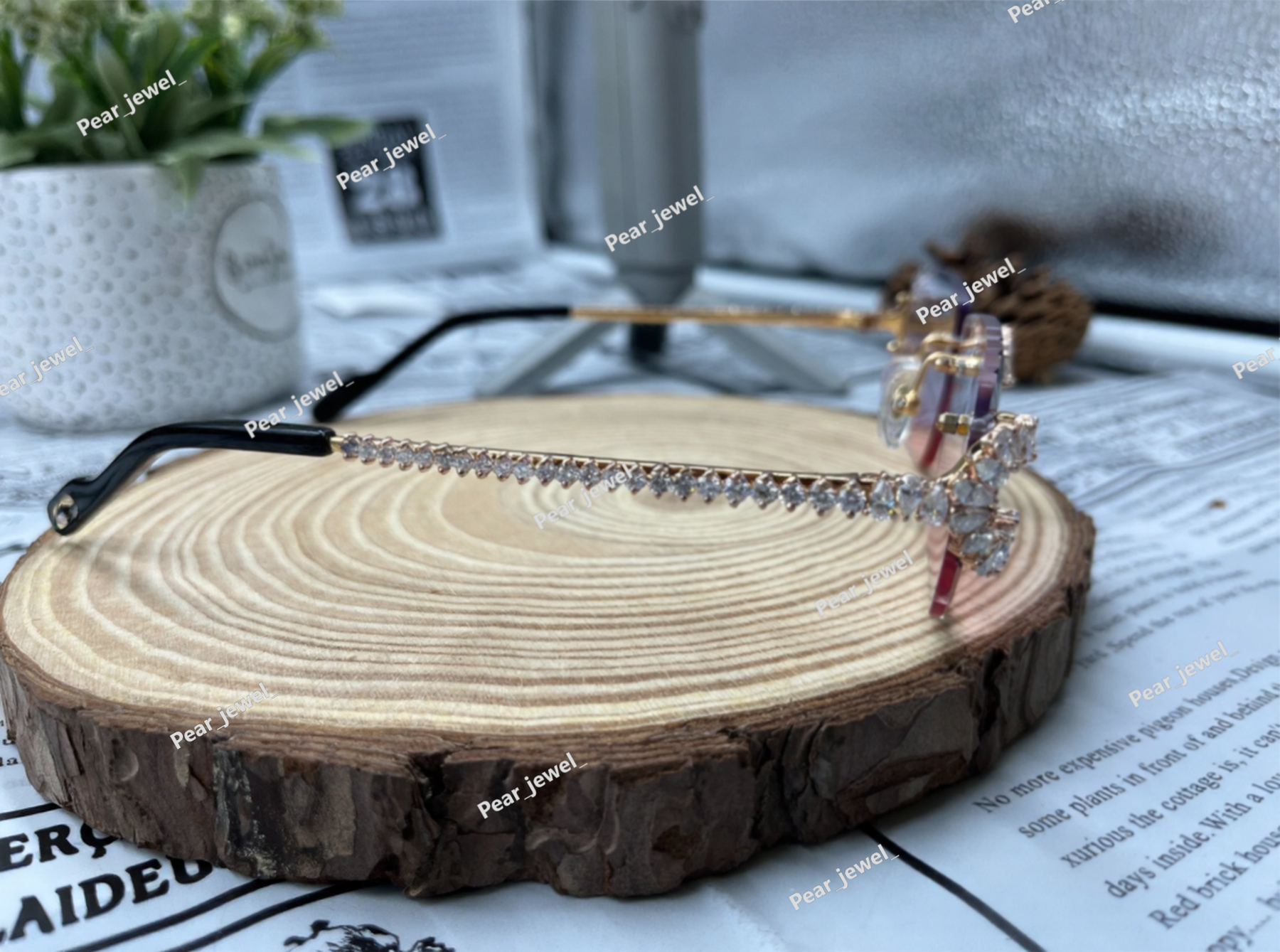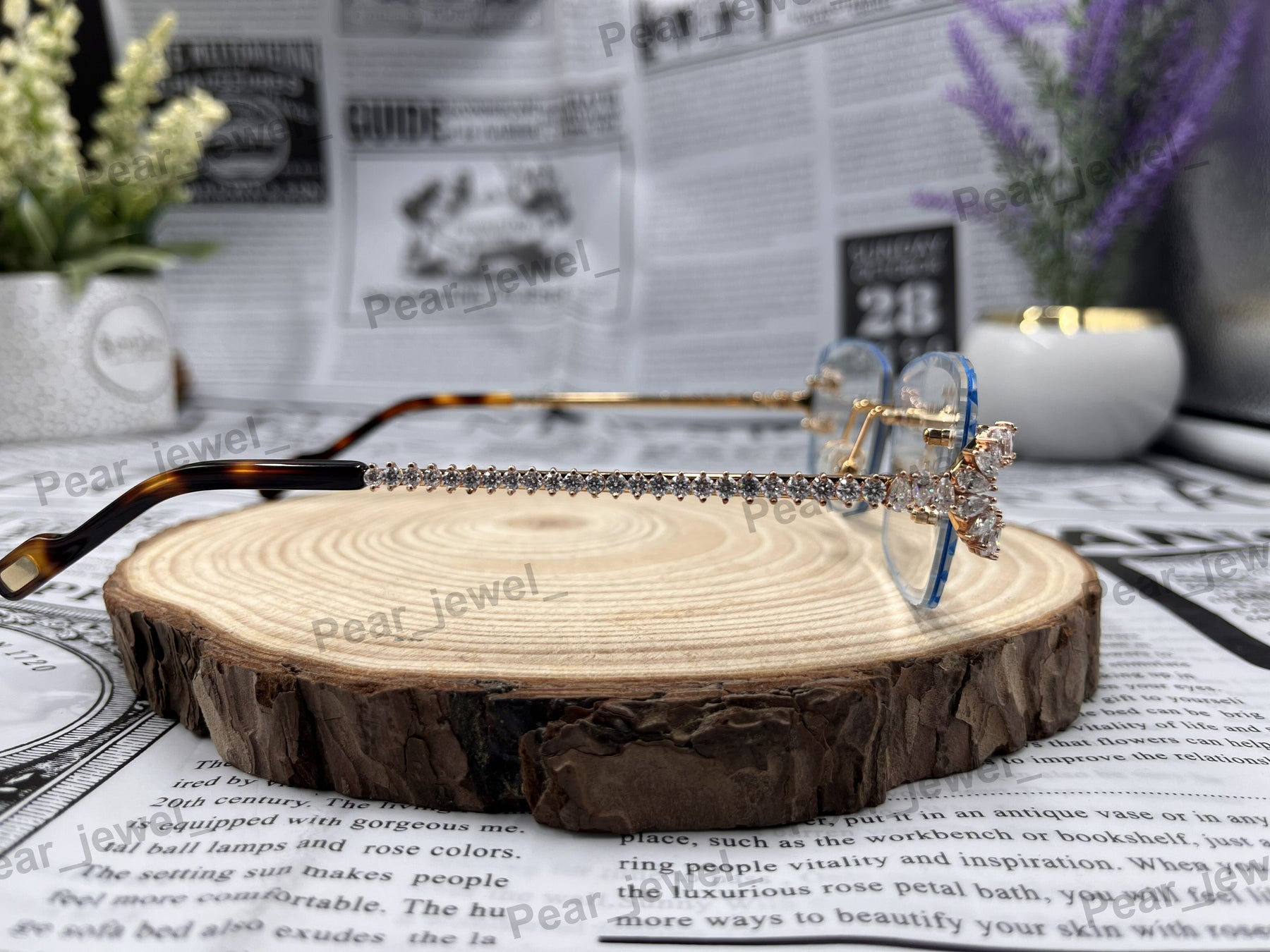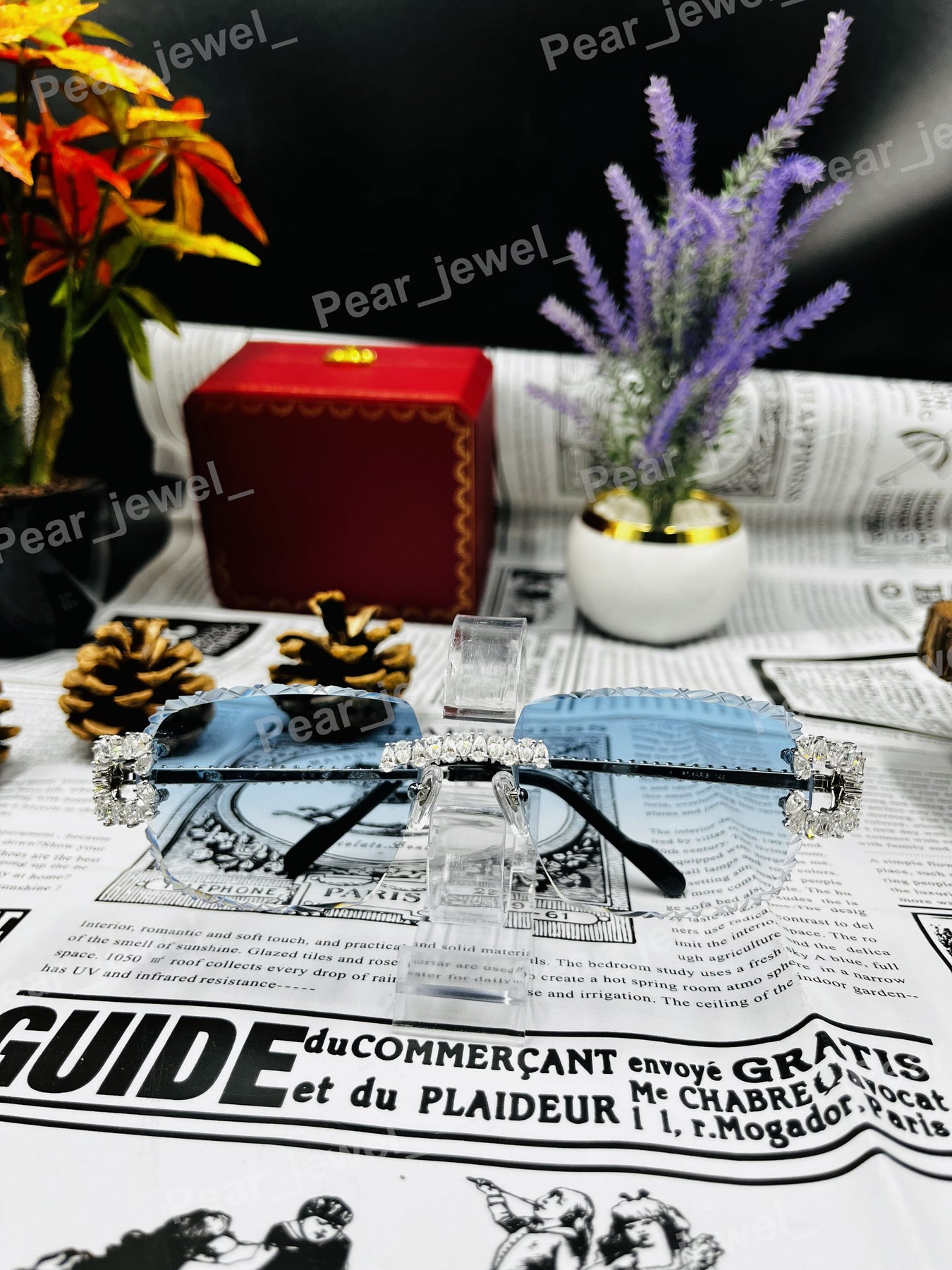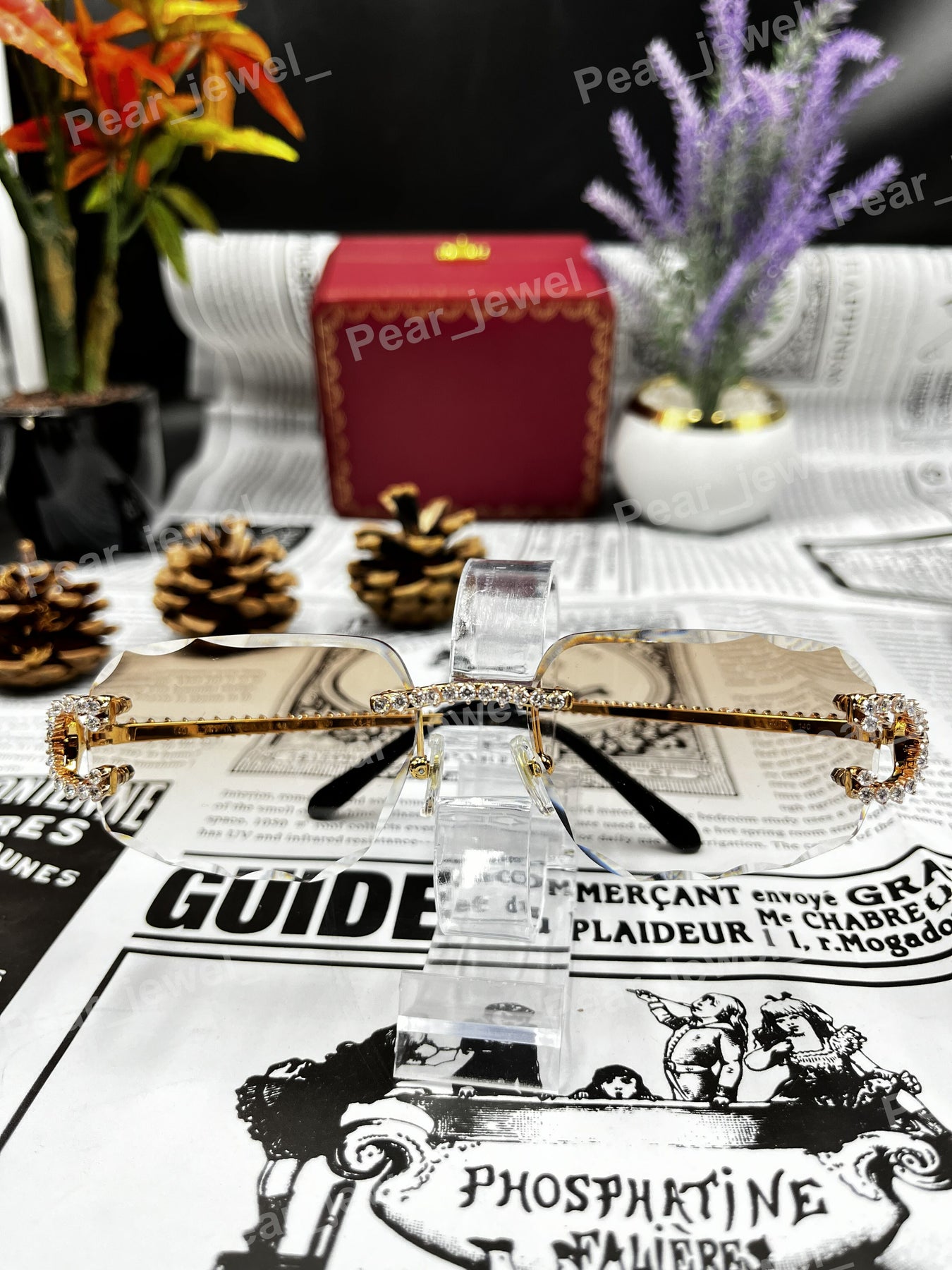 Iced Out 925 Silver Rimless Glasses Pear Cut Moissanite Unique Cut Sunglasses