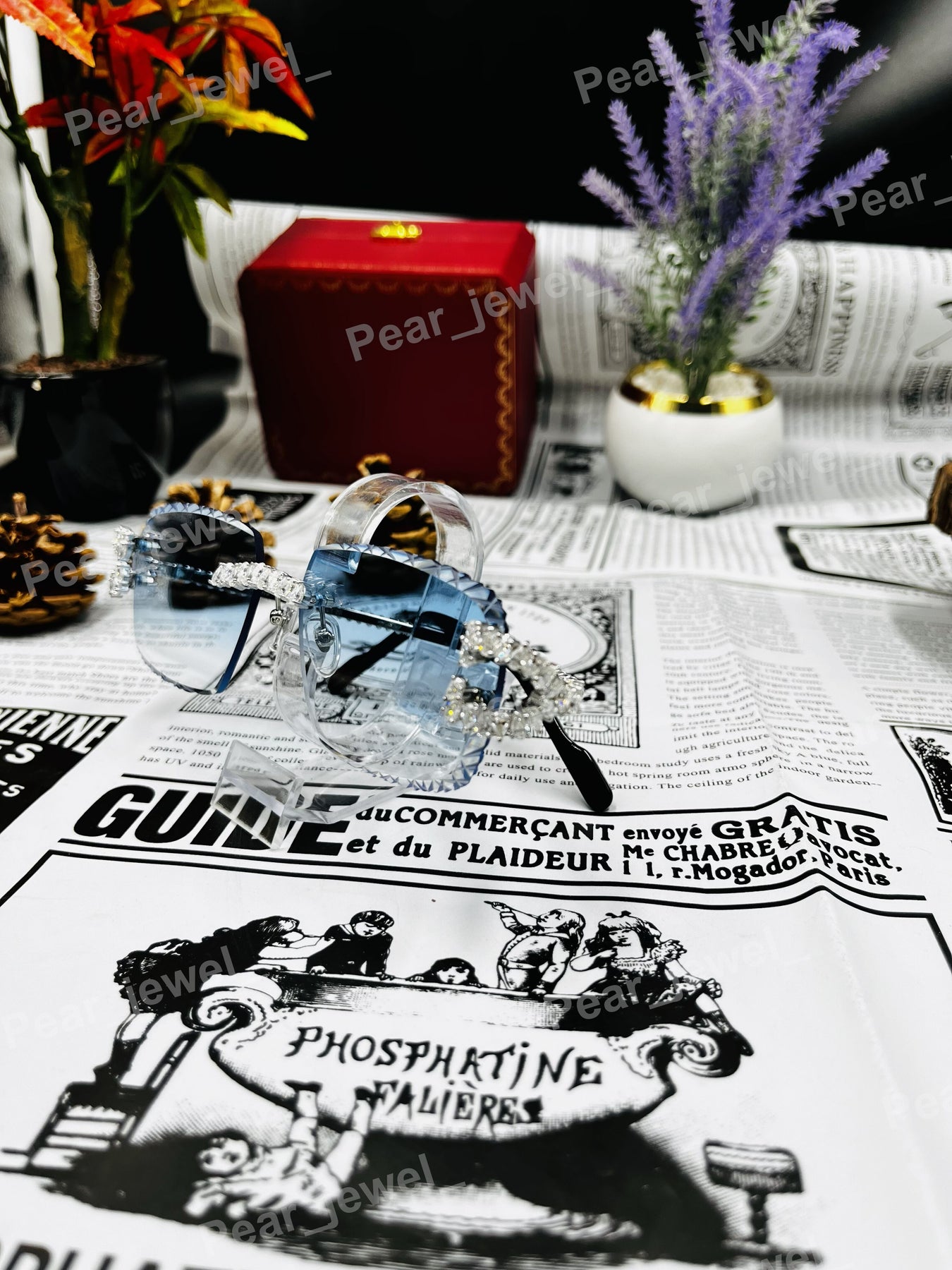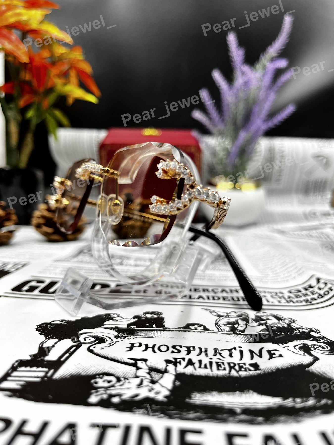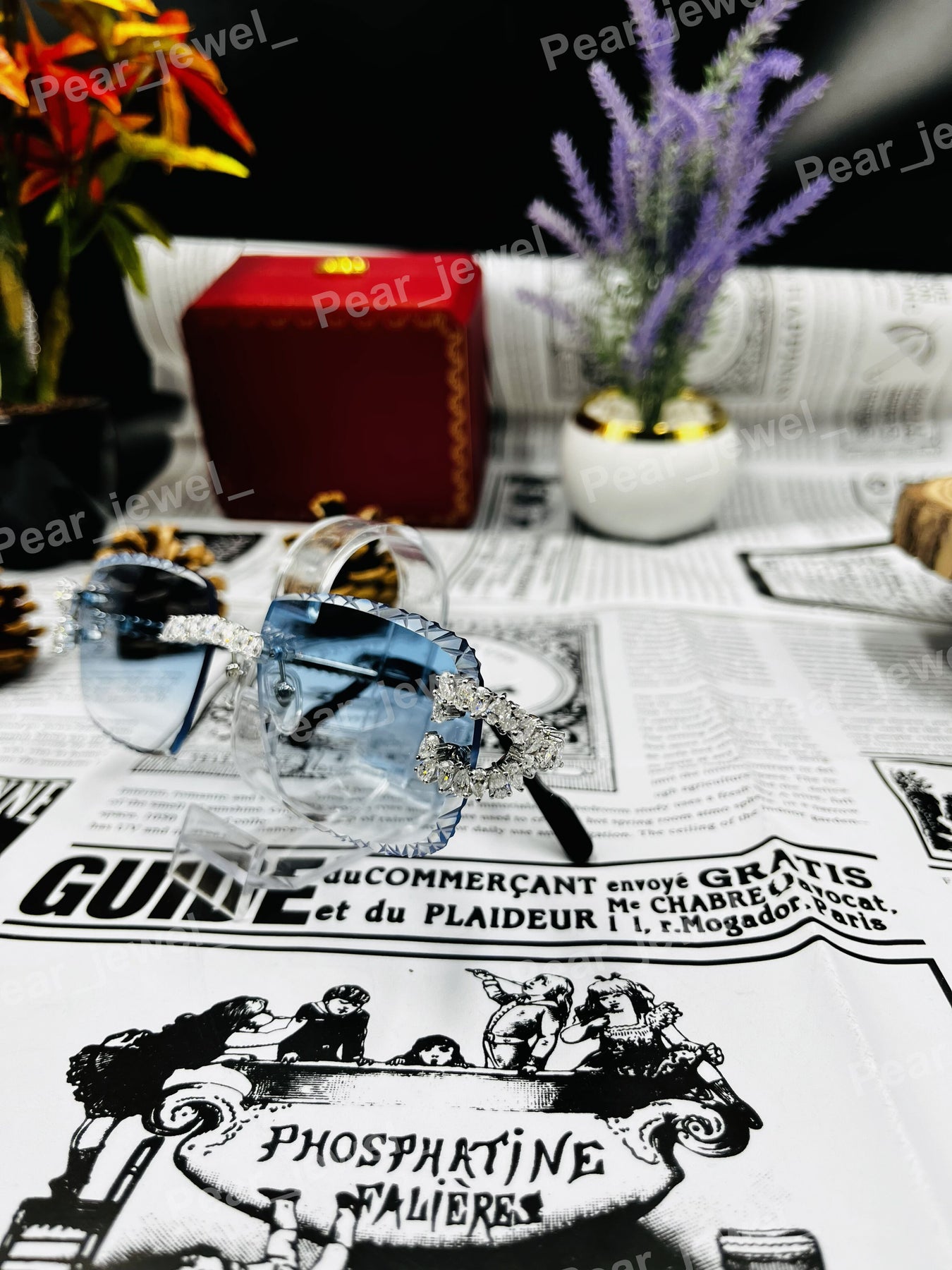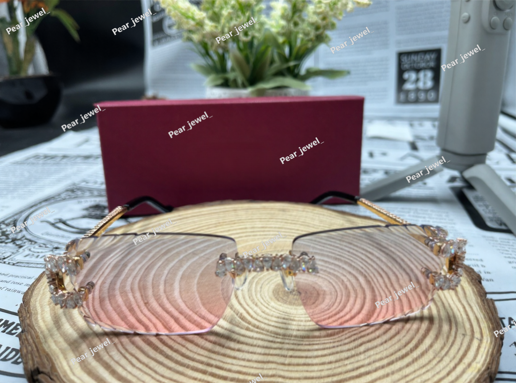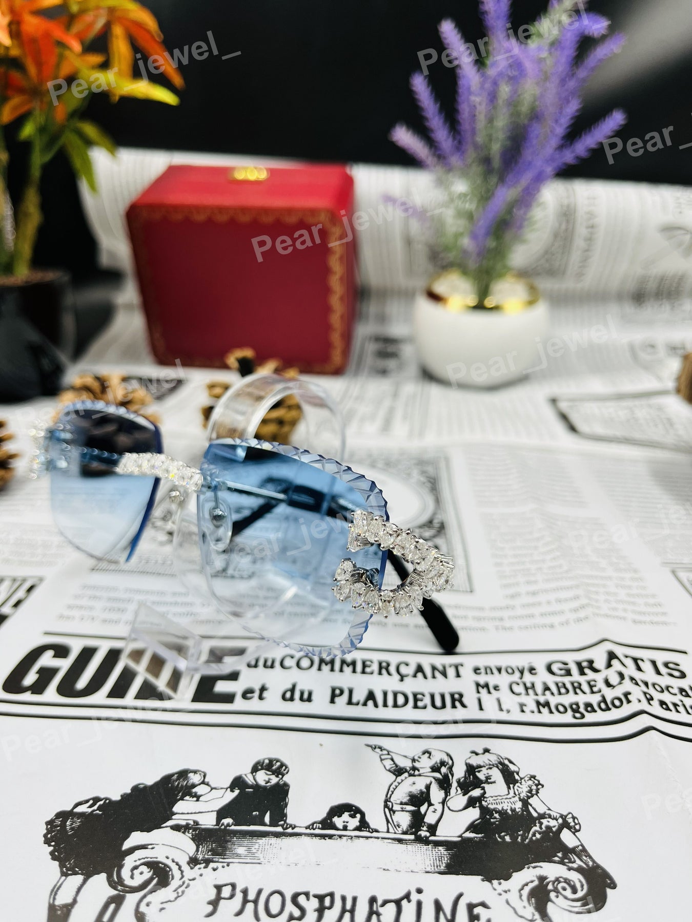 Iced Out 925 Silver Rimless Glasses Pear Cut Moissanite Unique Cut Sunglasses