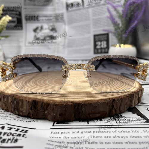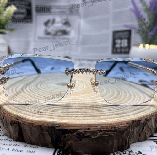 Iced Out VVS Moissanite Diamond Rimless Luxury Eyewear Sunglasses