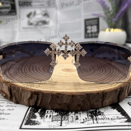 Iced Out Cross Silver VVS Moissanite Diamond Rimless Luxury Sunglasses