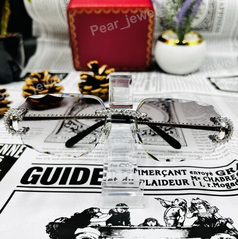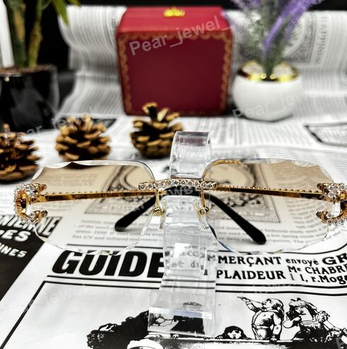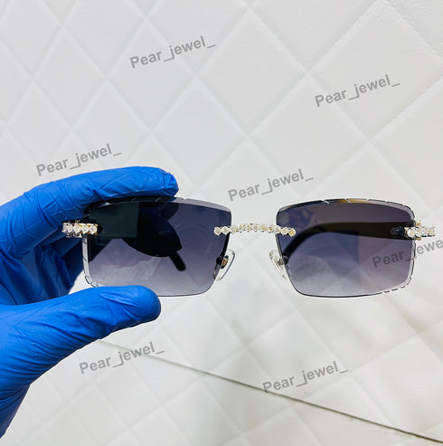 VVS Moissanite Diamond Silver Rimless Sunglasses Iced Out Glasses