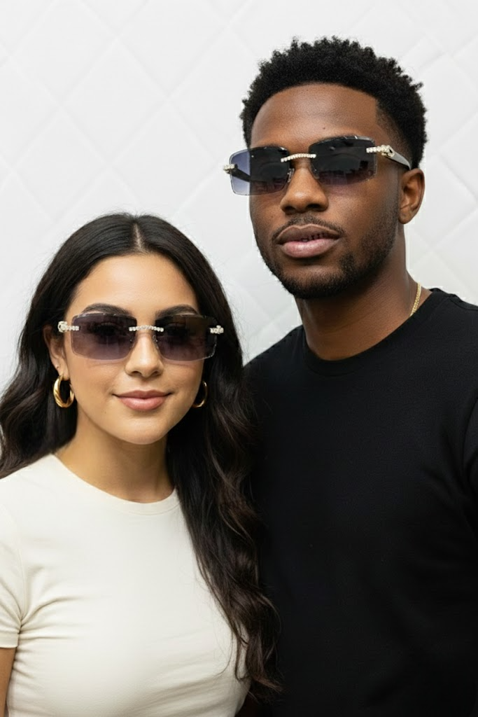 Iced Out Rimlress Sunglasses Moissanite Diamond style Evry wear