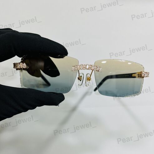Iced Out Moissanite Diamond Rimless Gradiant Sunglasses HipHop Eyewear