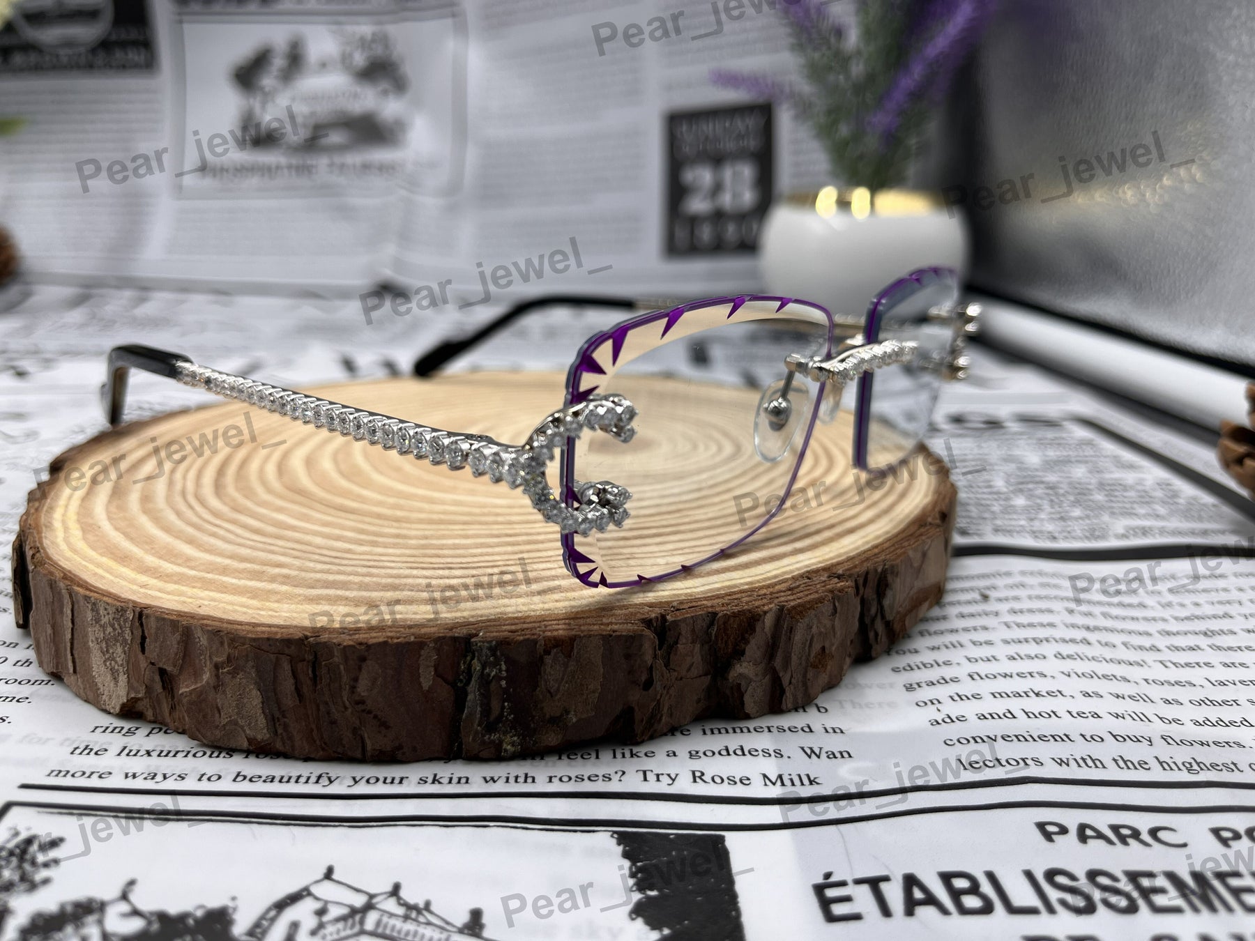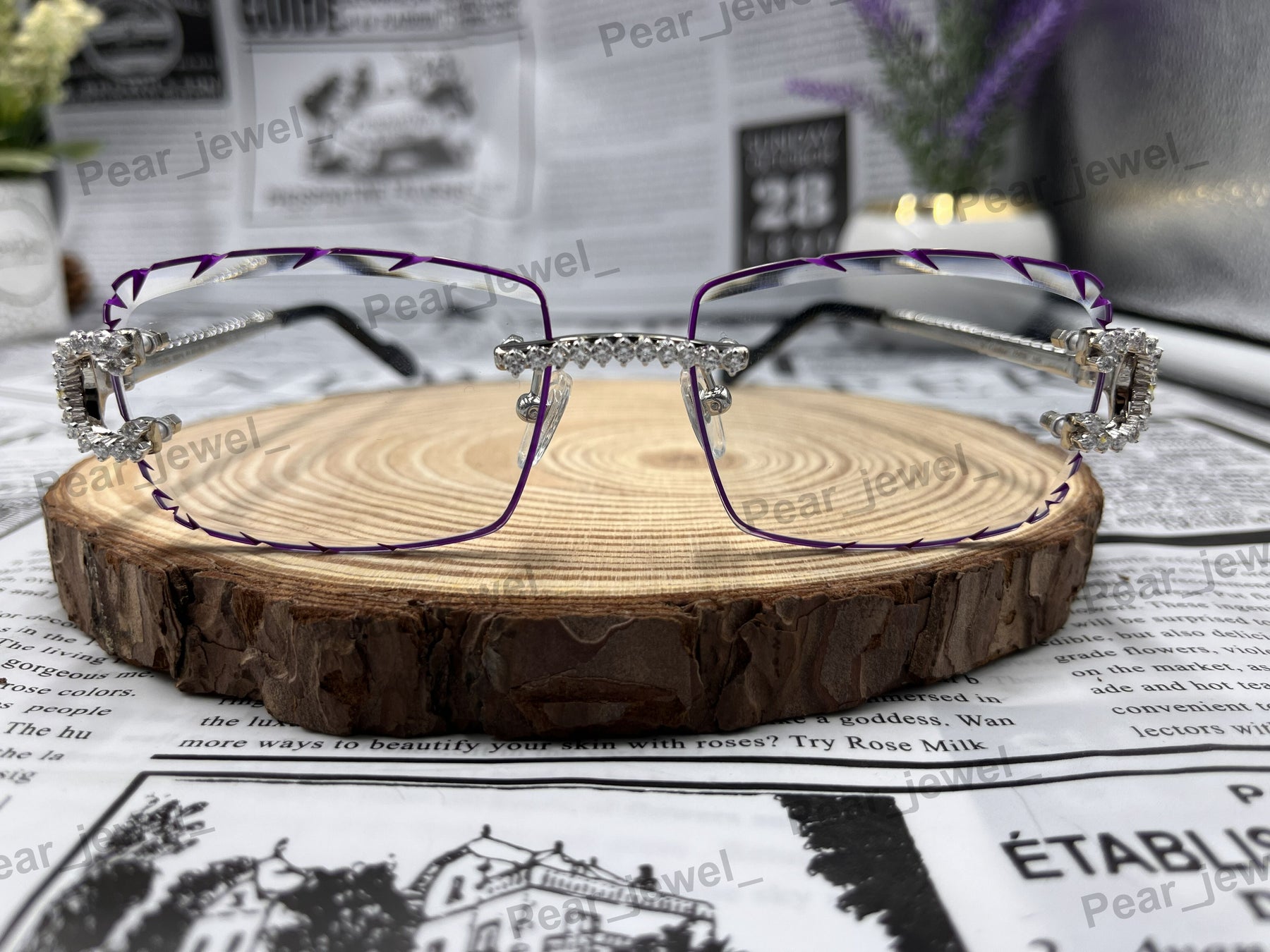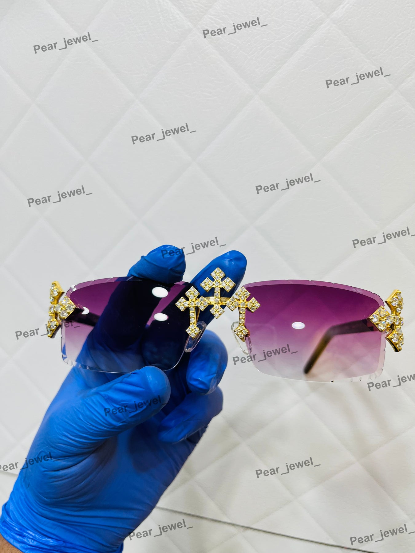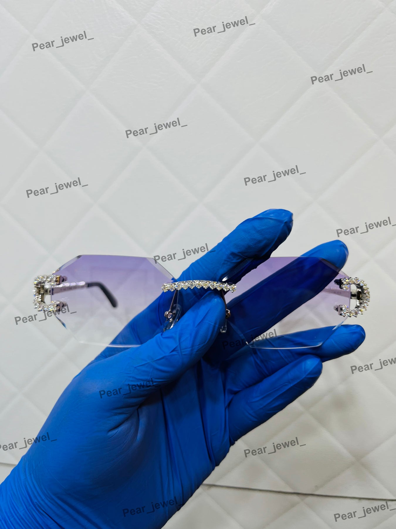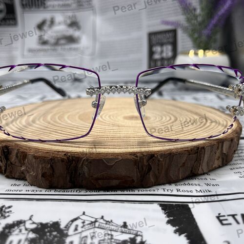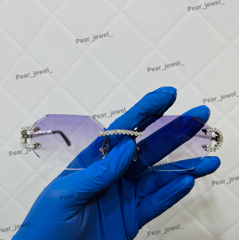 Iced Out VVS Moissanite Diamond Purple Rimless Silver Luxury Sunglasses