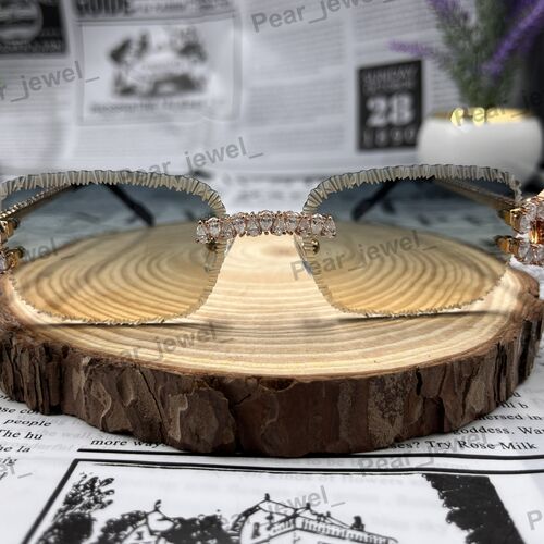 Iced Out Pear Moissanite Daimond Rimless HipHop Sunglasses For Unisex