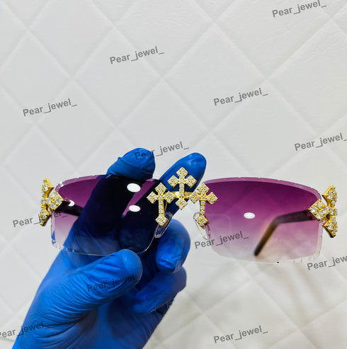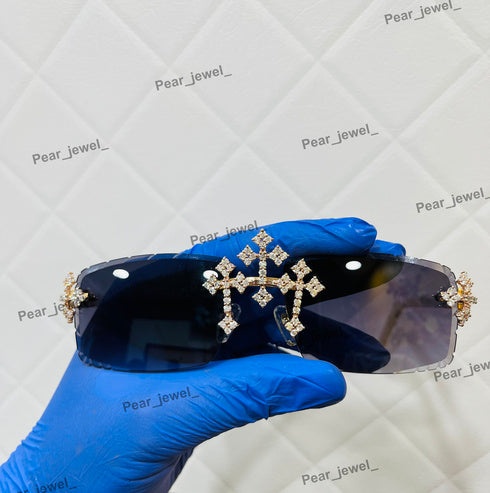 Iced Out Moissanite Daimond Cross Rimless HipHop Sunglasses For Unisex